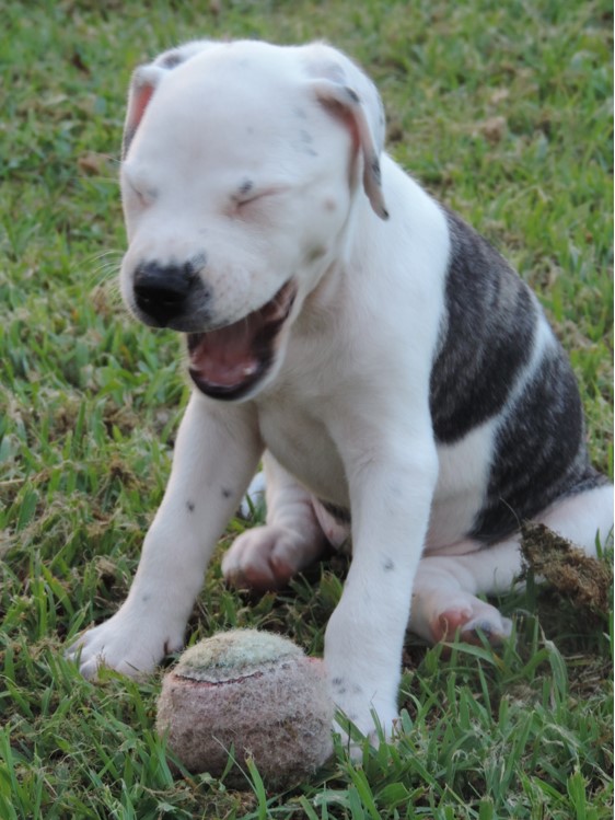 Lotus is a very friendly pup that loves being picked up and cuddled. She really enjoys the company of other dogs and loves kids, and will follow them around anywhere. Lotus is a little more reserved than her sister perhaps being the smallest of her litter, however she too is confident despite being deaf and is quite observant which helps when training, clapping hands and tapping motions signals for her to come and she responds well. She enjoys playing with toys and like any pup likes to chew so chew toys are a must. Lotus likes hair, she likes to lick and nibble. She easily adjusts to new situations but can be a little shy at first.