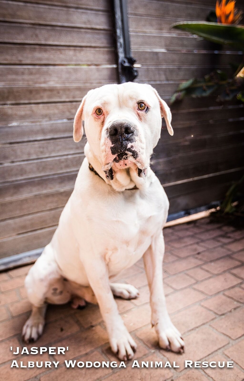Meet Jasper the handsome three year old male American Bulldog. He is a large boy with a huge heart!