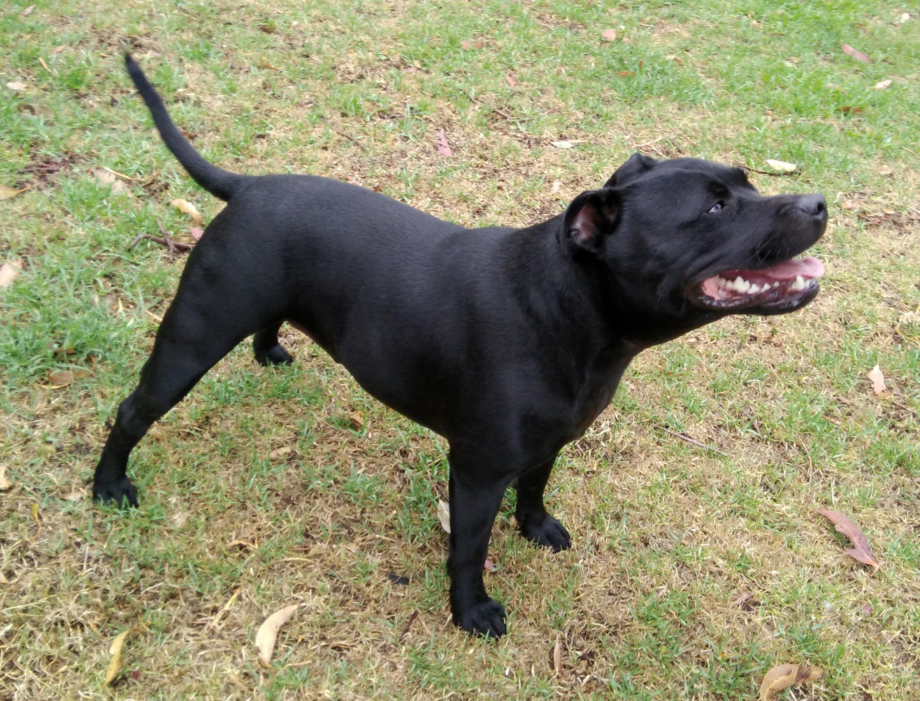 Hank is a solidly built 3 year old purebred English Staffy. Hank is a medium sized dog with a big sweet fat head with gorgeous black silky coat. This boy will give Arnold Schwarzenegger a run for his money!