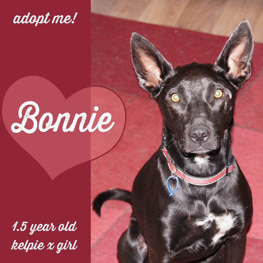 Bonnie is a lovely 19 month old Kelpie X. She is a smart and friendly girl who has a beautiful black coat and gorgeous eyes.