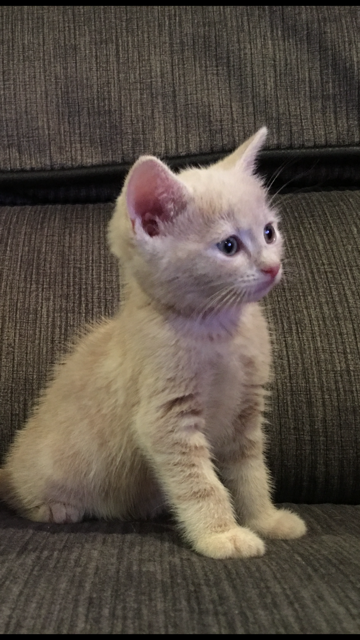 This little Man is Cute, Courageous & Full of Energy. He loves to play with the other cat’s in the house but also enjoys some time out on anyone’s warm lap. He adores the kid’s & is alway’s up for a play in between napping & eating. He’s a bit wary of the dog but has adjusted well over time.