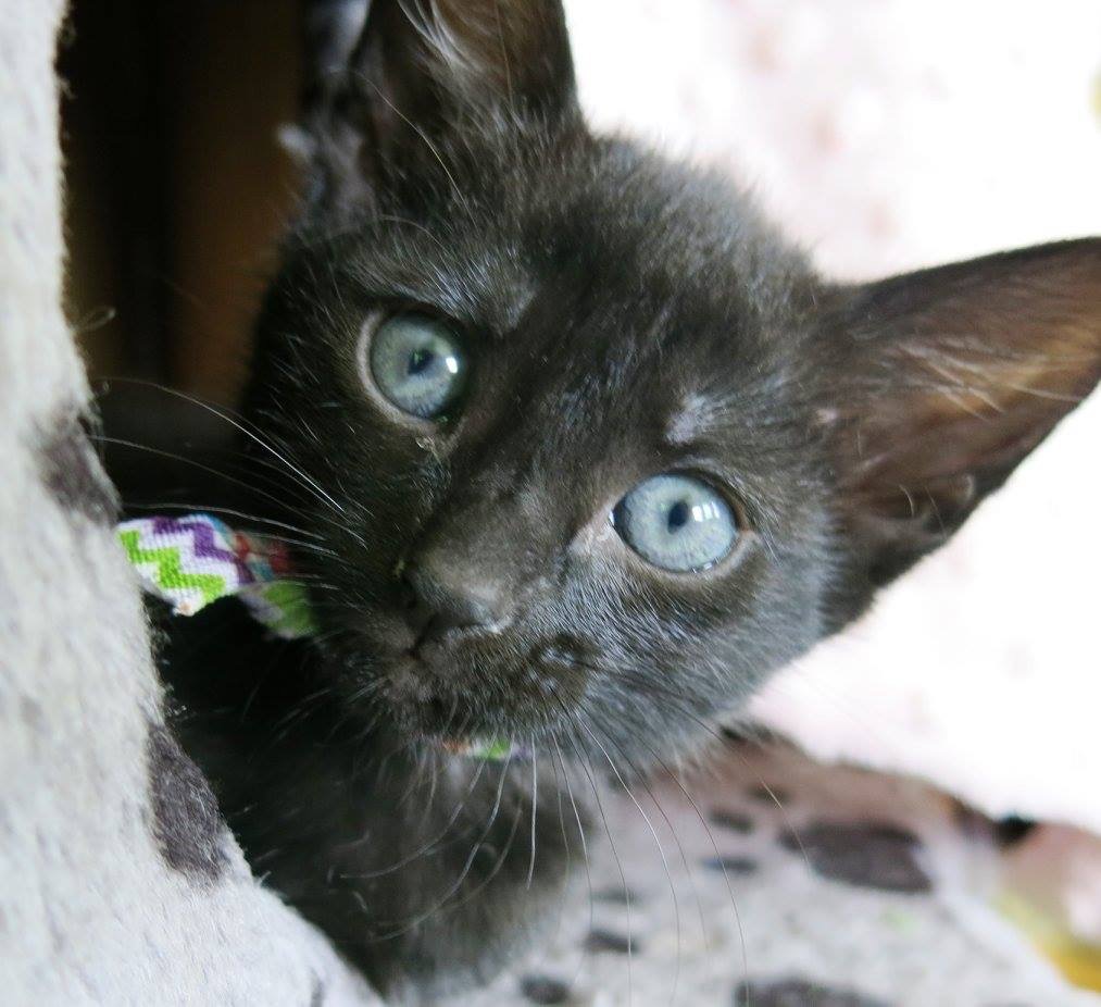 ‘Potter you cannot win against me” says a very cute 7 week old Alice to Harry. Hard to fathom she was once considered among the most dangerous and sadistic of Voldemort’s followers and sentenced to life imprisonment. Here she waves her wizardry wand is one of the cutest most nicest wee kittens. Like her siblings she loves trick and treating with her siblings and is into adventure every minute of the day. Bellatrix is now ready for pre-Adoption.