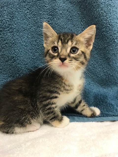 Mash and his 3 sisters were brought to us by a member of the public who found them alone outside their house. They were all scared at first but are now very sweet and loving!! They are currently 5 weeks so will be available for viewing and adoption from the 20/11/17. Mash is a tabby boy