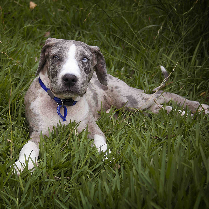 Harlie is a handsome,18 week old, male Bull Arab x Koolie x Dane puppy. He has a stunning Harlequin coat and with one blue eye and one green eye, he is the best-looking pup on the block. Harlie has a beautiful nature and would make a wonderful family pet.