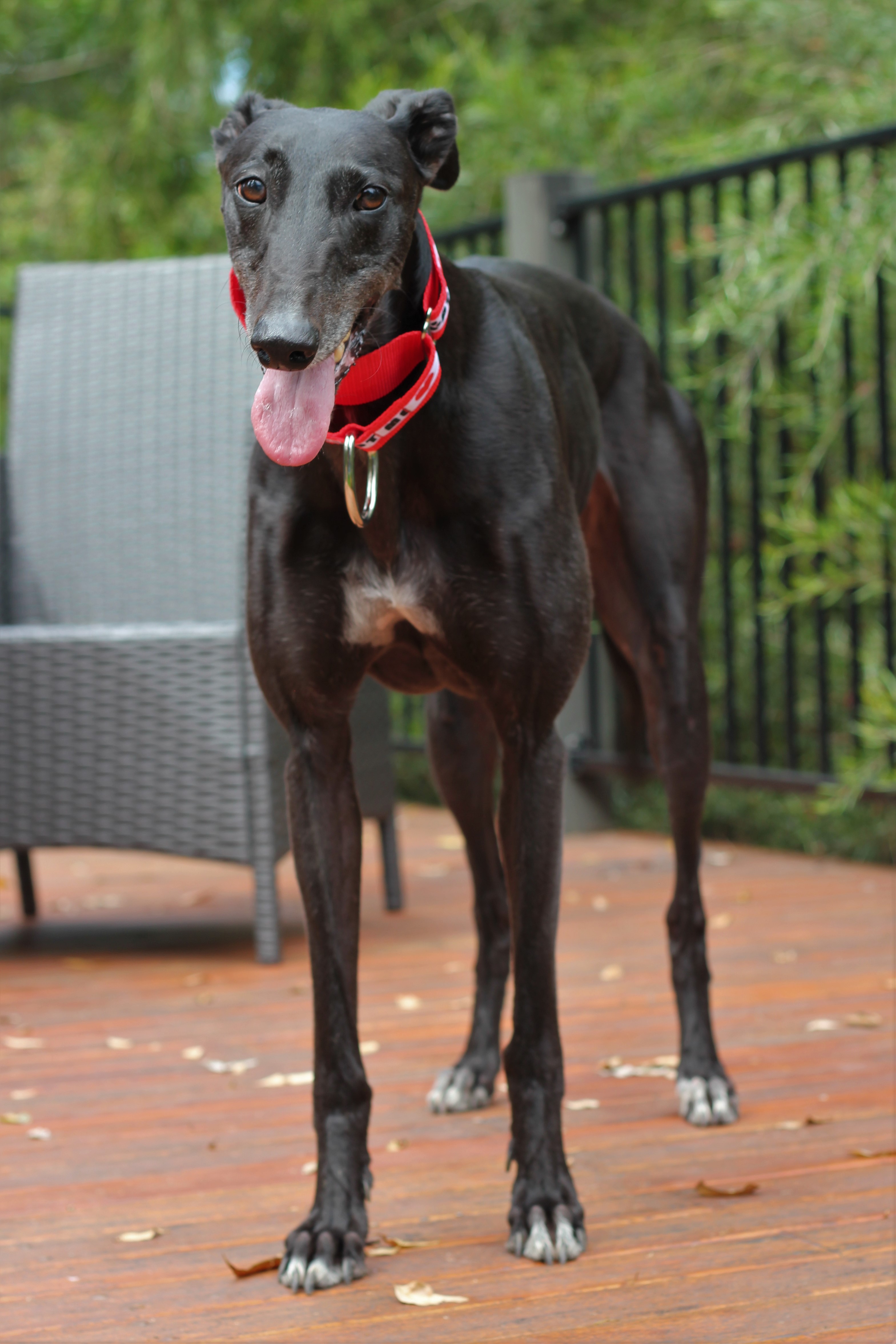 Brittie has an eye condition that afflicts greyhounds, called Pannus, which if left untreated can eventually make them blind. It is very easily managed and requires daily eye drops, which she takes in her stride.