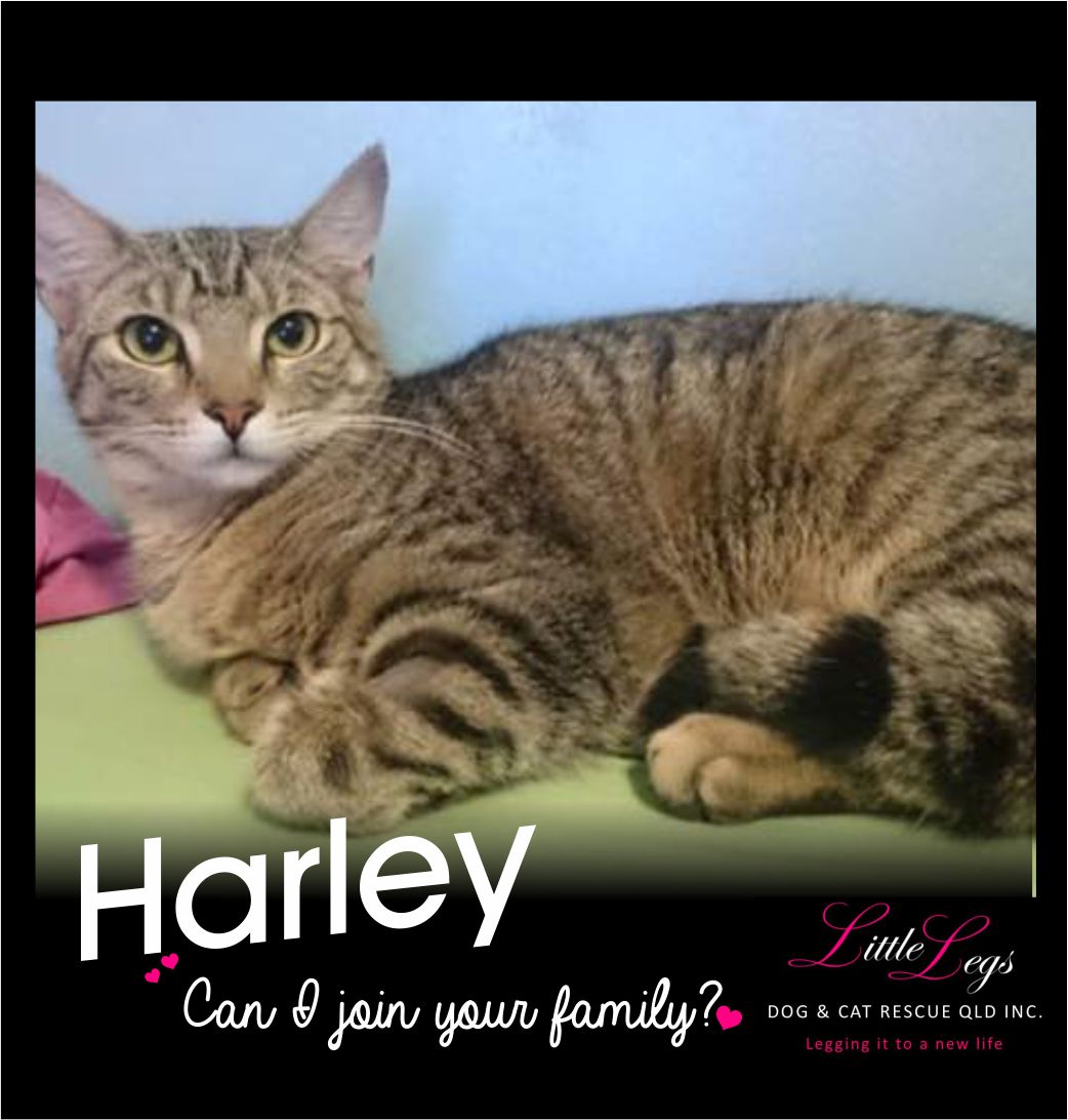 New animals and people can be a little intimidating at first and in response Harley tends to be a little shy, but warms up in her own time.