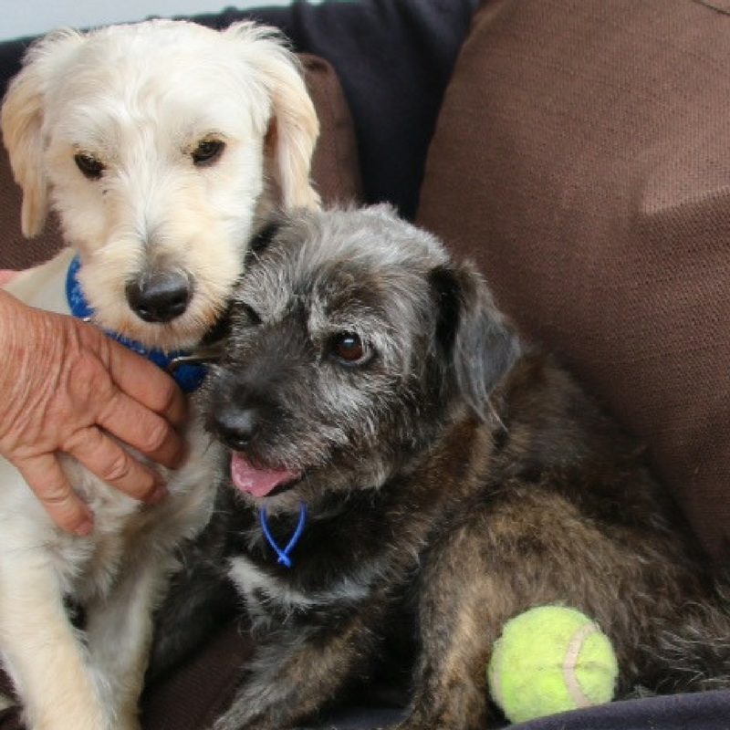These babes haven't been tested with cats or pocket pets but are good with children. They are both well behaved in the car. These babes were surrendered together and ideally we would like to see them remain together, enjoying the rest of their lives with a loving family.