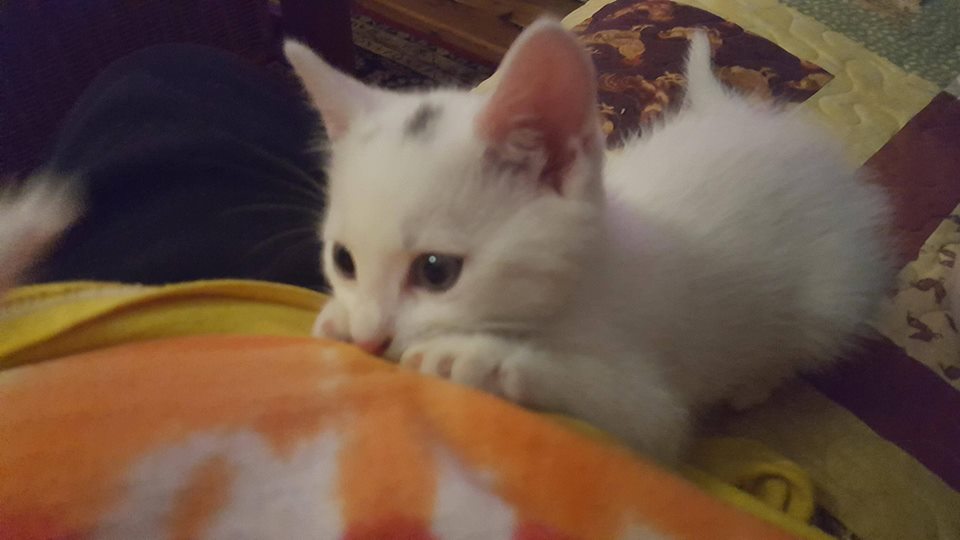 Playful, cuddly independent male kittens, Casper has two black dots on his head and Spook has a black smudge on his head. Both are litter box trained and live indoors but are happy to have supervised outdoor adventures too. They are dog and cat friendly and would be fine with children too! They are available to adopt from Narrandera NSW. They would be ideal for a home together as they enjoy each other's company and will call to each other if separate. However, we would be happy to discuss a single adoption if necessary. We also think there may be a little Oriental in these kittens as they display a slinkier type body confirmation and some of the traits of the Oriental breeds. At night they like nothing better than to curl up on your lap or beside you and doze. They have their energetic moments where they play chasings around the house, but are mostly quiet overnight. They are both so affectionate and people-friendly-you cannot go wrong!
