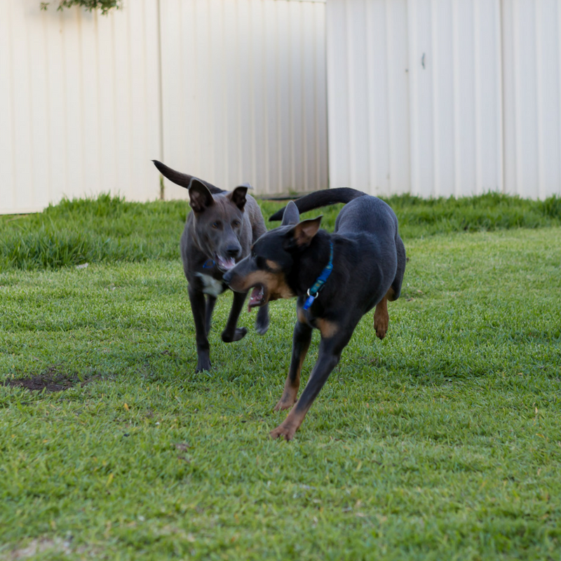 Ash would be fine as an only dog if you don’t work away from home, but if you work full time Ash would like to have a canine companion for company. Preferably a dog of similar size or bigger. During the day when we are at work Ash and his foster brother have toys to keep them stimulated. They also have an undercover area with a kennel and soft bedding to sleep on. He has not made any attempts to escape. Ash has been in foster care with another male dog, approximately 8 months of age. He has gotten along with all dogs he has met so far. He has not been around cats or pocket pets since coming into care. He is friendly and warmed up really quick to our friends 8 year old son.