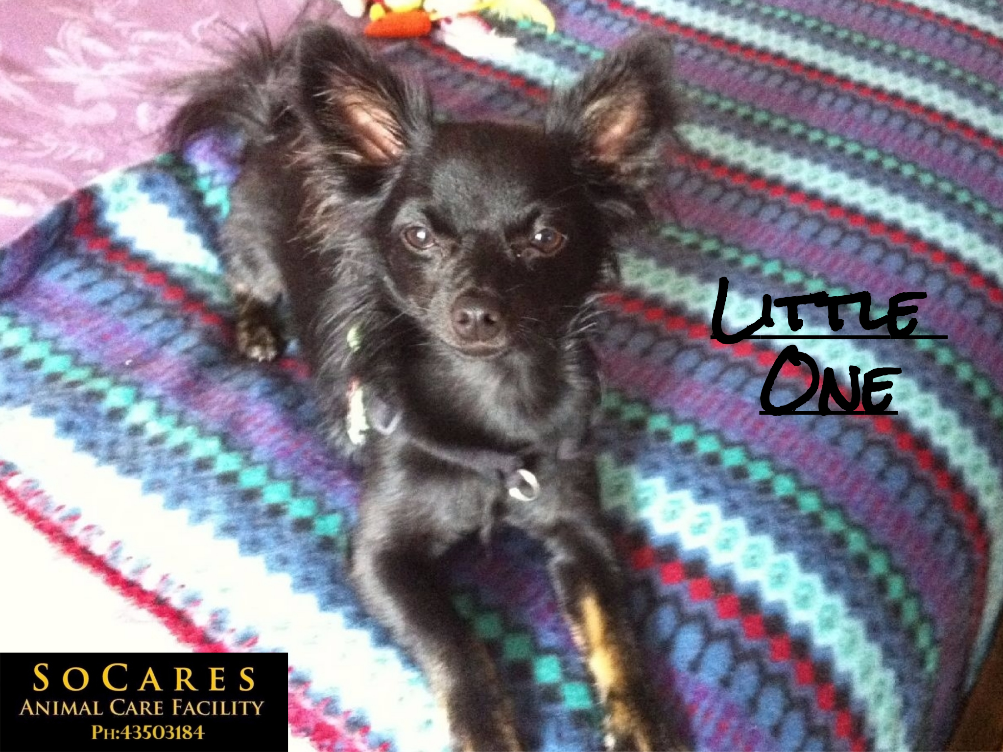 Little One is a happy little chap and he has a lovely personality. He gets along well with other small doggie friends but finds cats a little scary. Little One can get a bit anxious if he is contained in a very small area. To keep him at his happiest, Little One will need to have access to, both inside and outside of his new home. Little One will not be suitable for a home with children 10yrs and under. He is a clever boy, loves car rides, fully house trained and he will make a wonderful companion for someone wanting a little friend in their life.