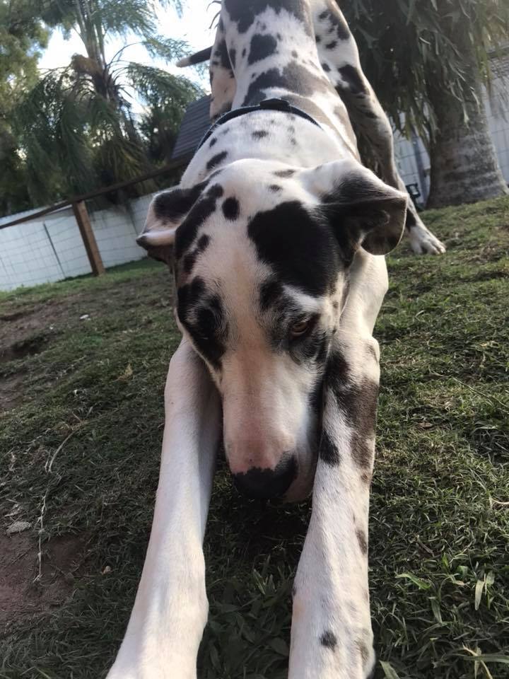 Hi there, my name is Storm and I am looking for a new family and I am hoping you can help me. I am still a young boy and pupper at heart so I need a home with someone who understands that I need the commitment of ongoing training. I love other dogs, so if you have other dogs that would be fab, I don't even mind the small ones but they sometimes get under my feet ... opps!