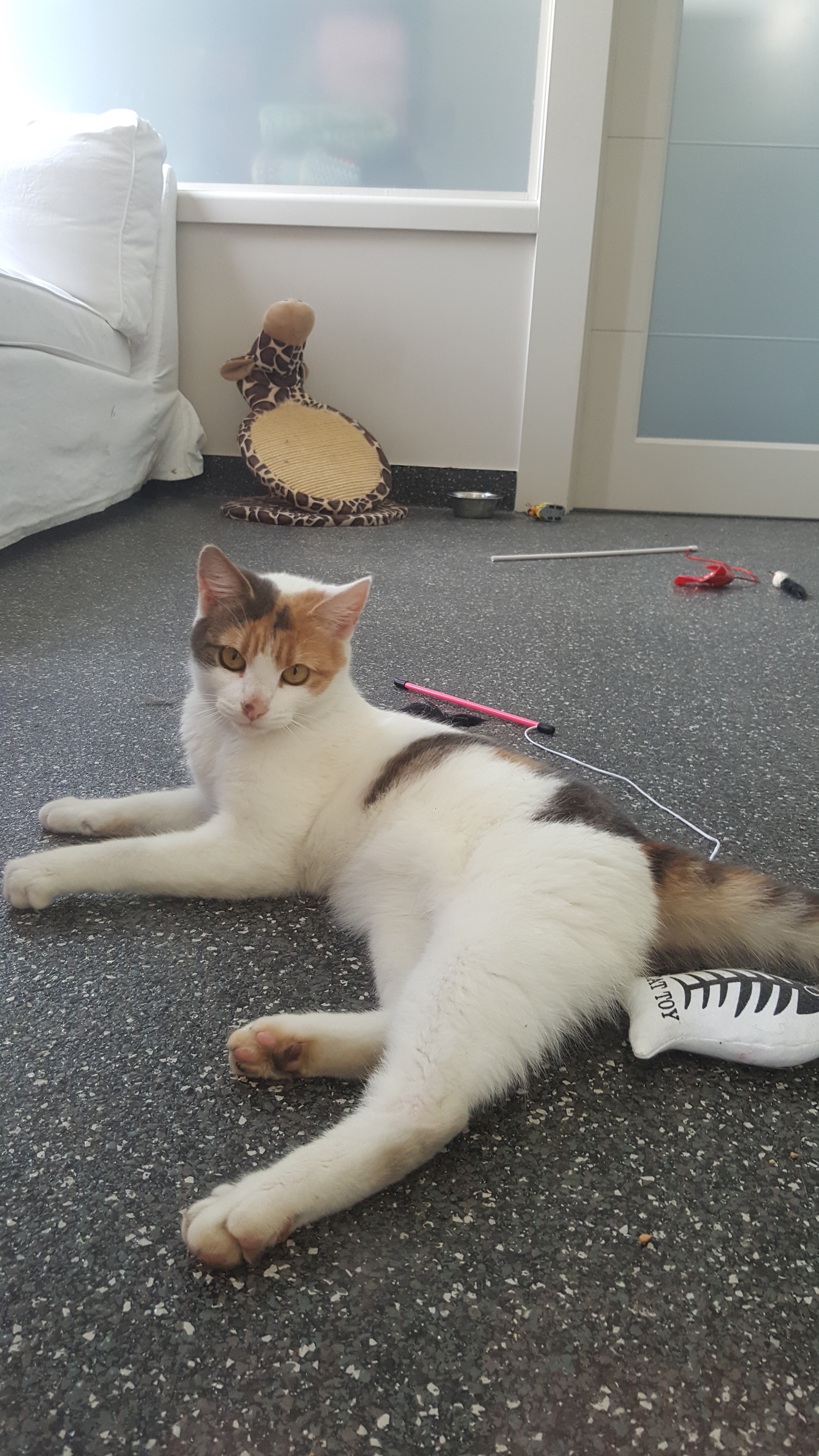 Meet Winnie she is a sweet young girl who just loves to play and carry her mouse toy around. She would love lots of toys, scratching post and someone who will play with her. She may be happy sharing a home with a friendly male cat, Winnie has a short, easy-care coat. She will need to be an indoor cat or have a cat enclosure that has plenty of shade. This will protect her light features from the sun.