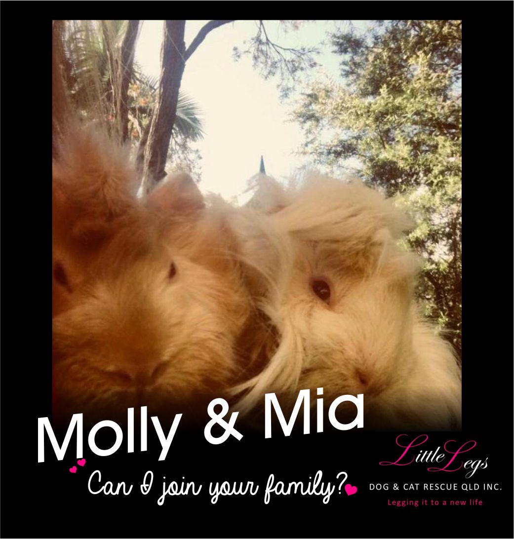 Molly and Mia are happy little girls who love to talk. They really enjoy their food and are relatively relaxed around people and other pets (digs/cats) - although they would benefit from ongoing socialisation.