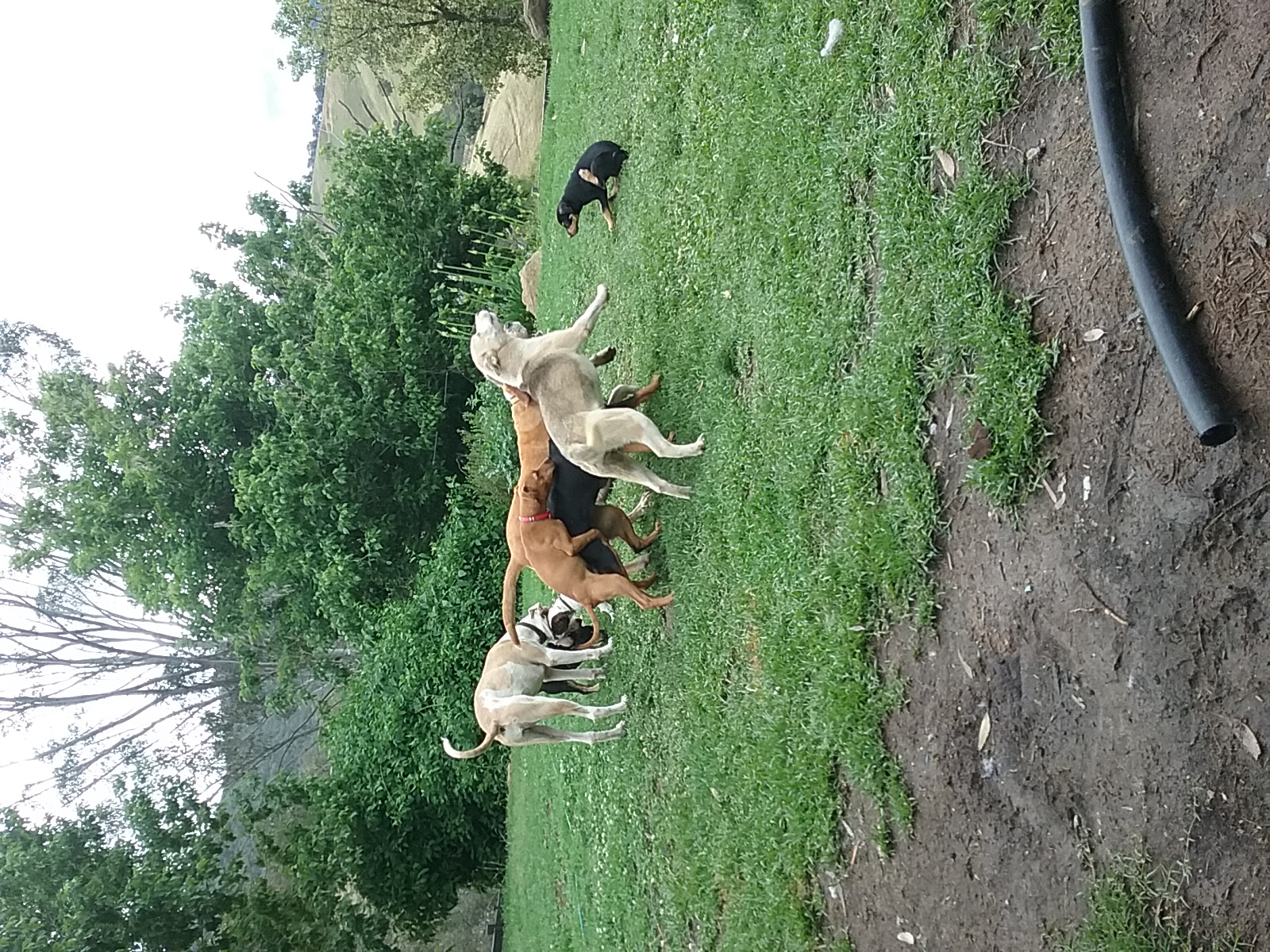 He is the happiest little chappy who simply wants to play chew eat and sleep. I am guessing he is staffy mix such a gorgeous bundle of fun and mischief.