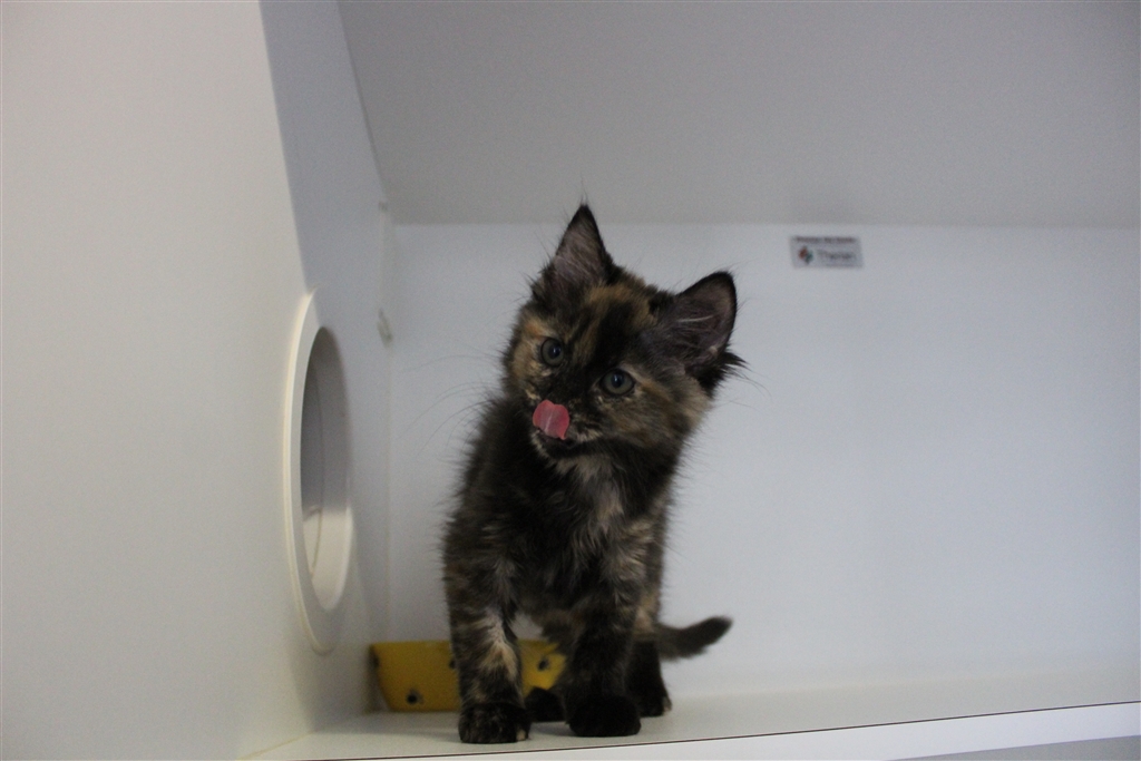 This is Pom Pom, she's a delightful little tortie girl who came into RSPCA WA with her brother Bowie. They were found all alone under a patio and brought here by some good Samaritans. After a few weeks receiving some TLC in foster care they are back, ready to go to their new home.