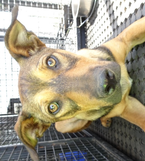 We are looking for people who would be interested in adopting Custer. Custer was one of 3 dogs surrendered to us by his owner as unwanted. When he arrived, he was in light body condition and had demodex mites. He was extremely timid and would squash himself in the far corner of the pen, bark and urinate on himself.