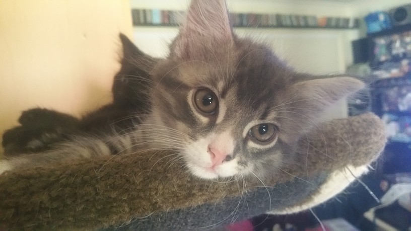 Michael is a big softy. The baby of the litter, he loves nothing more than to follow the big cats around, and have them dote on him. He loves being brushed, and snuggling, and generally being involved in the household activities.