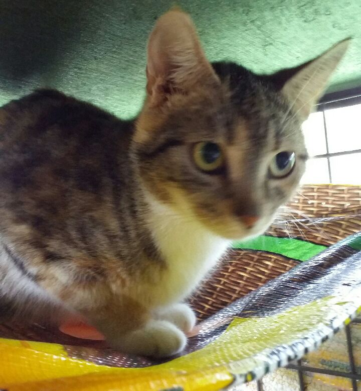 Ruthie is a mother cat that was brought to us by a gentleman who found her in the bush with her kittens. It would seem that they were dumped in the bush to fend for themselves. She is a grey torte approximately 8 months old. Sweet natured and would suit an adult family. Loves a cuddle but a little nervous round people she doesn't know. Litter trained.