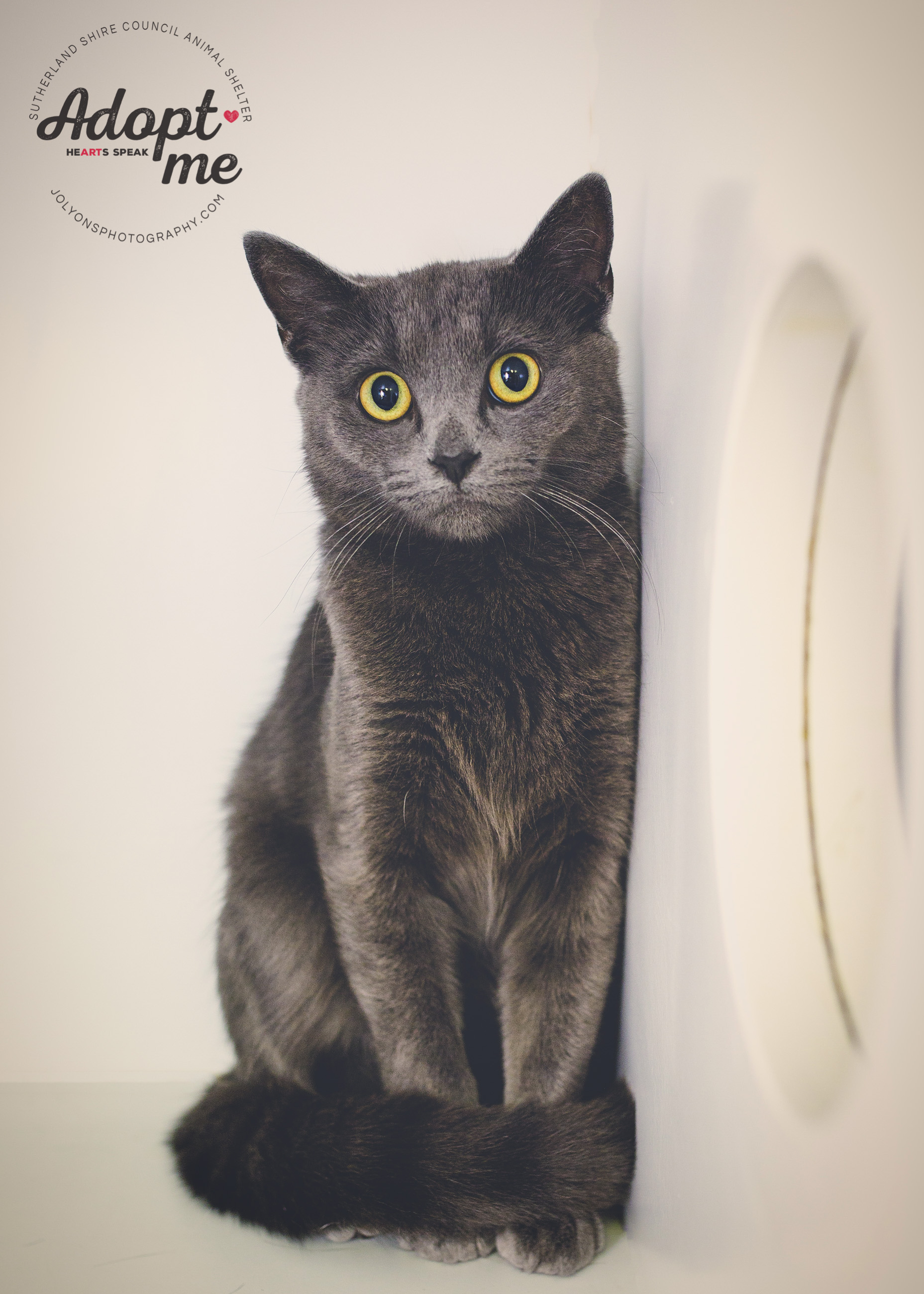 Amazing Atlantis, where do we even start with this blue beauty? This absolutely breathtaking feline was brought into us as a very scared and very timid stray cat found in Waterloo, and ended up with us at the shelter praying for someone to look past the fear in her eyes and give her a second chance. That’s exactly what we’ve done. Aside from her stunning shimmering blue fur and her big gold eyes, Atlantis actually really does want to trust people, and to be a part of peoples lives. Staff and volunteers have worked tirelessly with Atlantis to make her feel comfortable and finally be able to pat her and show her that humans can be really soft and loving. Atlantis will need a quiet and strictly indoors only home as she can spook easily. She will need an understanding owner who will give her all the time she needs to settle in and feel comfortable in her new environment. If you’re interested in Atlantis we recommend you come down and build a rapport with her so she can get to know that you’re the people who are going to sweep her off her paws.
