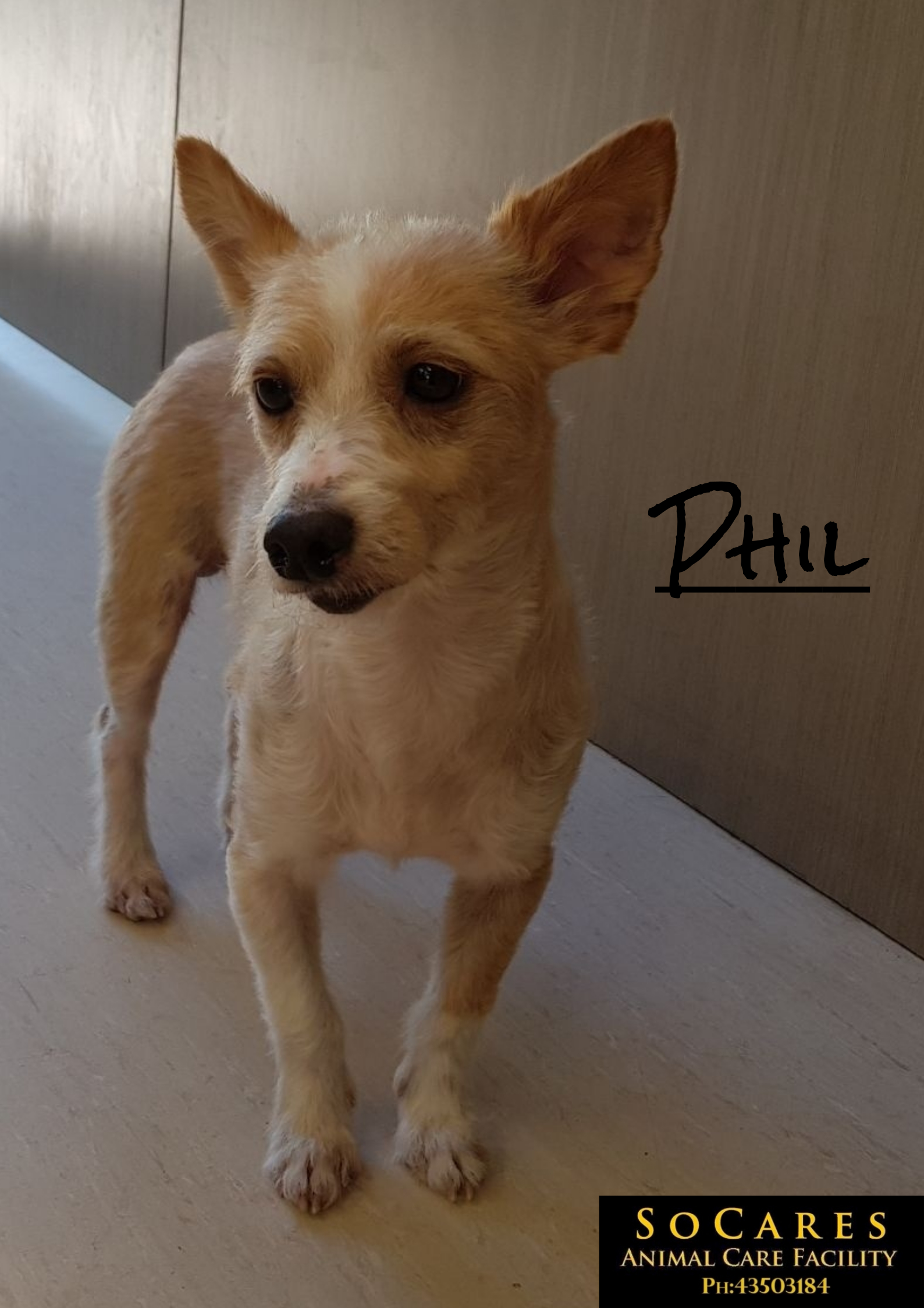 Phil is a very sweet, calm little boy. He is a little reserved around new people until you win his trust. He is very easy going and gets along well with his pound buddies. Phil came into the facility with skin issues, however his skin is healing nicely.