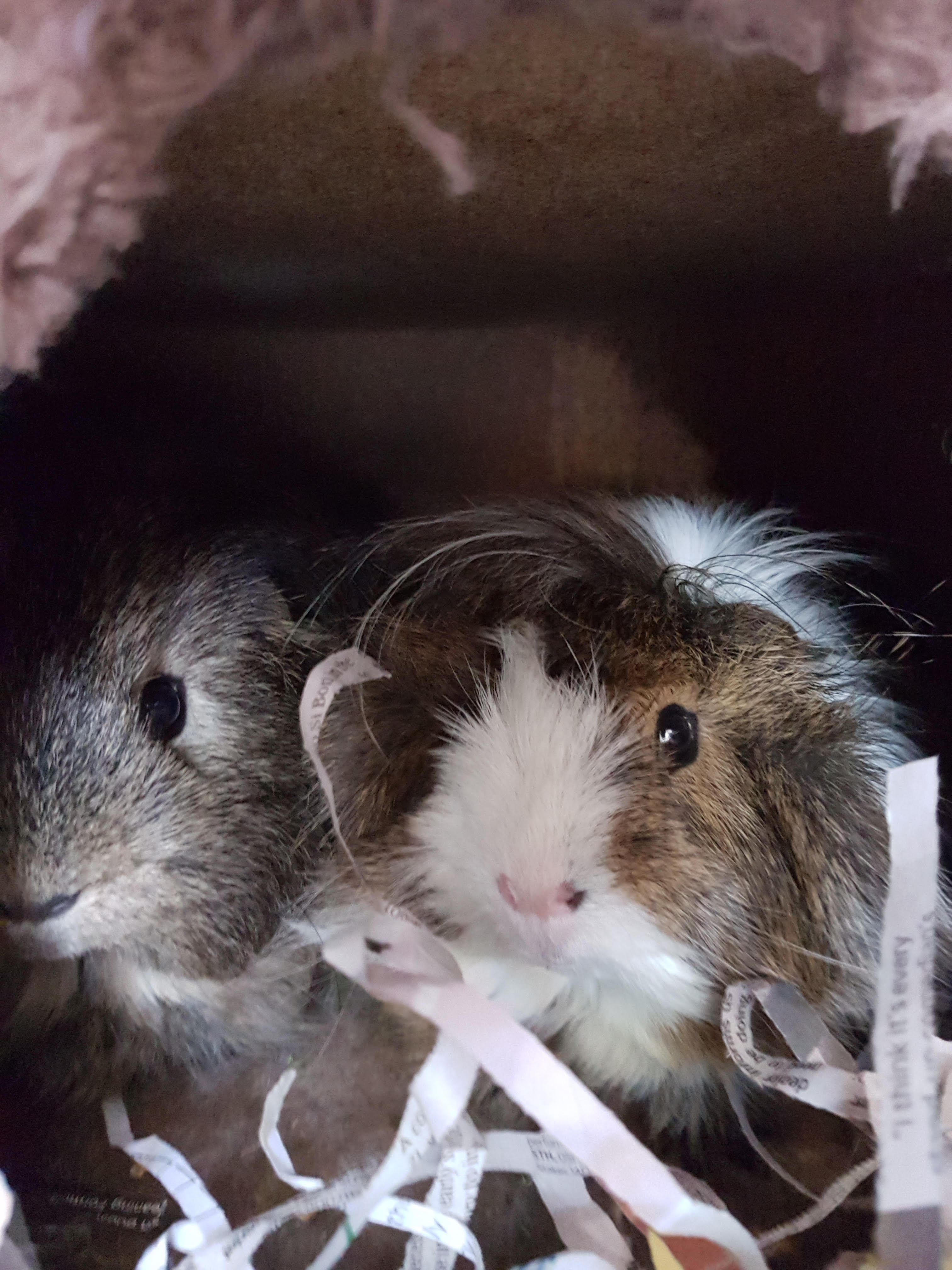 These guineas are both male and friendly, they have a big appetite and love fruit and veg