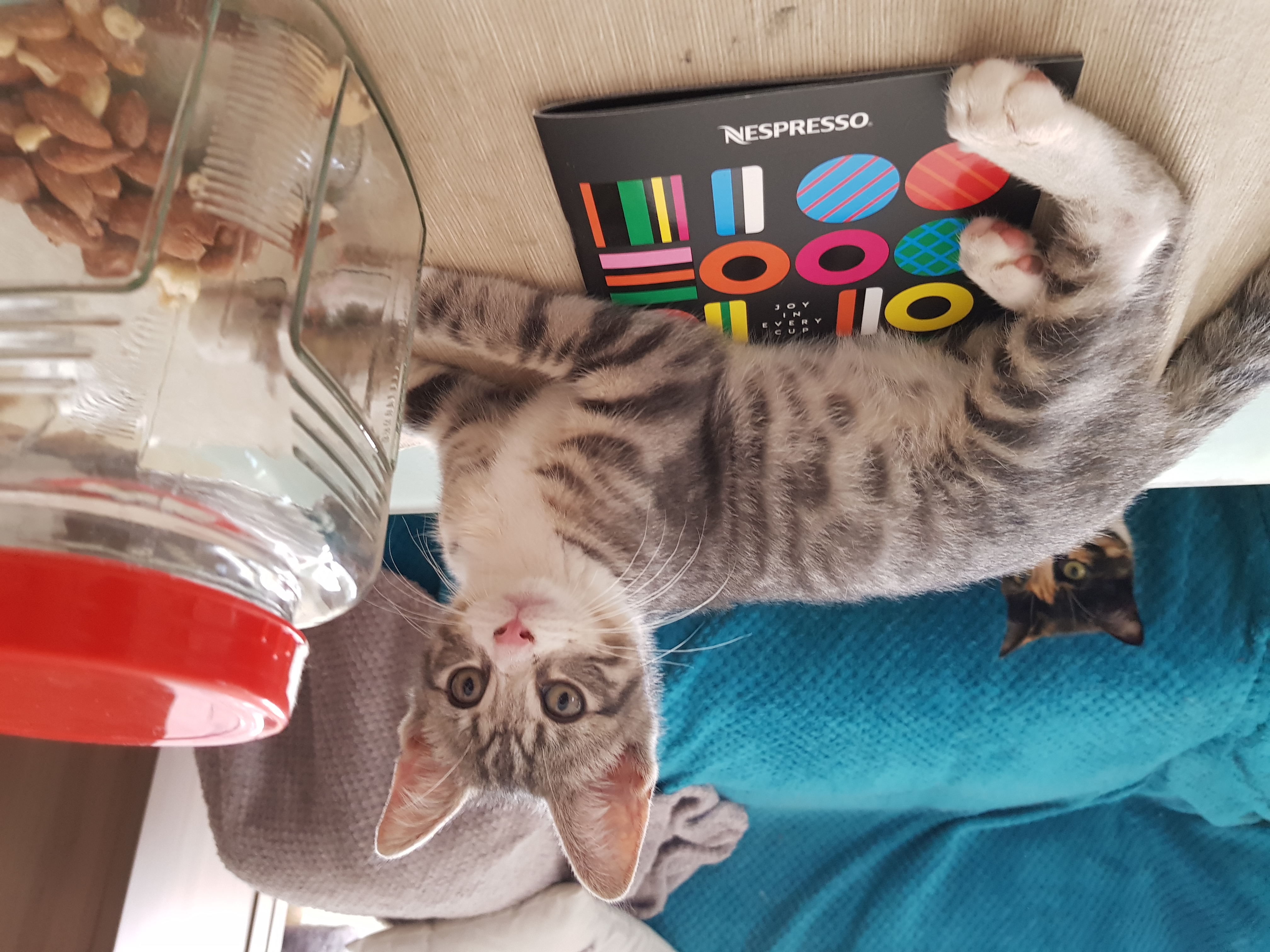 With all this playing, he does work up quite an appetite. Maxibon eagerly cleans up his bowl and anyone else's during meal time. He is currently enjoying a varied diet of kitten food, raw food and biscuits.