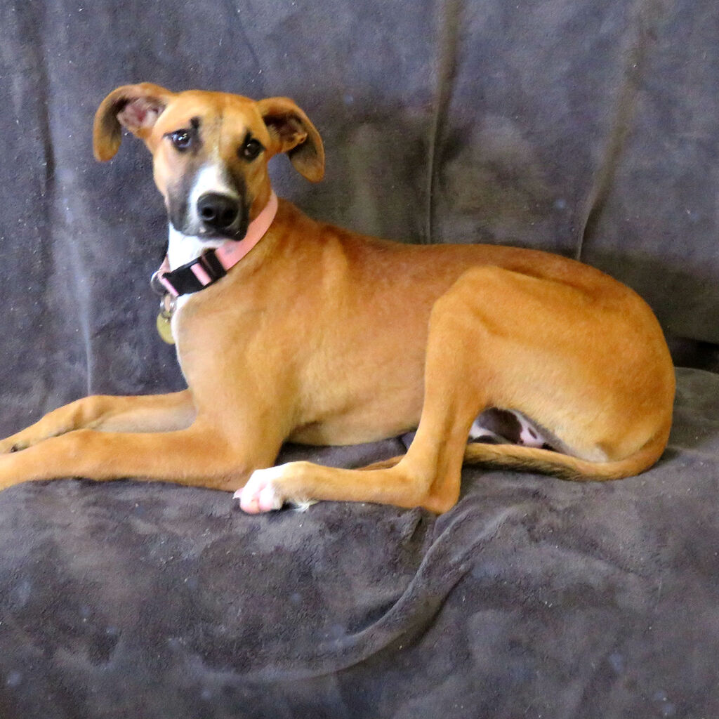 Sandy is a very sweet, large breed, young lady who is still growing. Sandy would be best suited to a home with an experienced and patient owner who is dedicated to attending obedience classes and giving her lots of TLC to help her come out of her shell and get used to her new environment. As well as training Sandy will also need daily exercise to prevent her from becoming bored and allowing her to mature in to a well mannered adult dog.