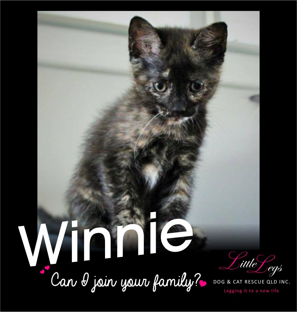 She has a beautiful tortoiseshell coat and I think the name 'Winnie' suits her so well because it looks like one of her front paws has been dipped in honey.