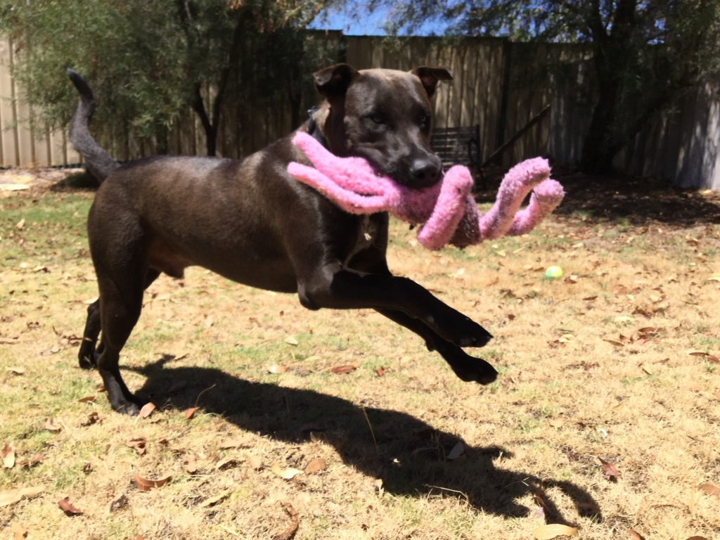When I’m inside though I’m a really good boy and love to just be with you. I'd prefer someone who is home more often than not. I love meeting new people. I can get a bit excited when I meet a new person – it’s someone new to play with after all – but I’m learning that when I calm down, I get more pats and play. I love playing with toys and I'm getting really good at catching a ball while it's bouncing and can't wait to show you. I’m best suited to a grown up household without kids.
