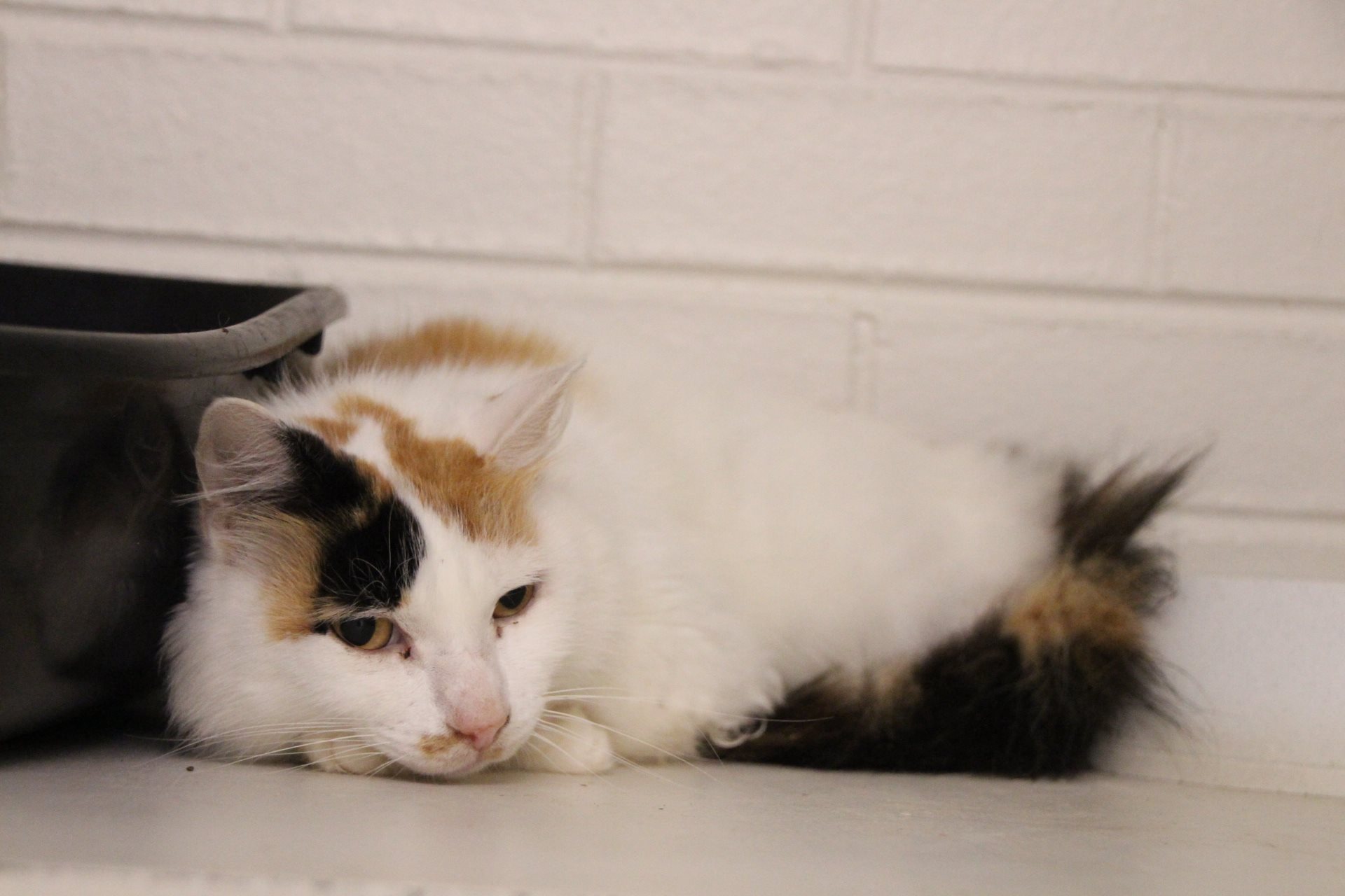 "Hello, my name is Jessicat. I am a big, shy girl. I usually spend my time sleeping and resting and I am about 2 years old. I am told I have a beautiful fluffy tail!