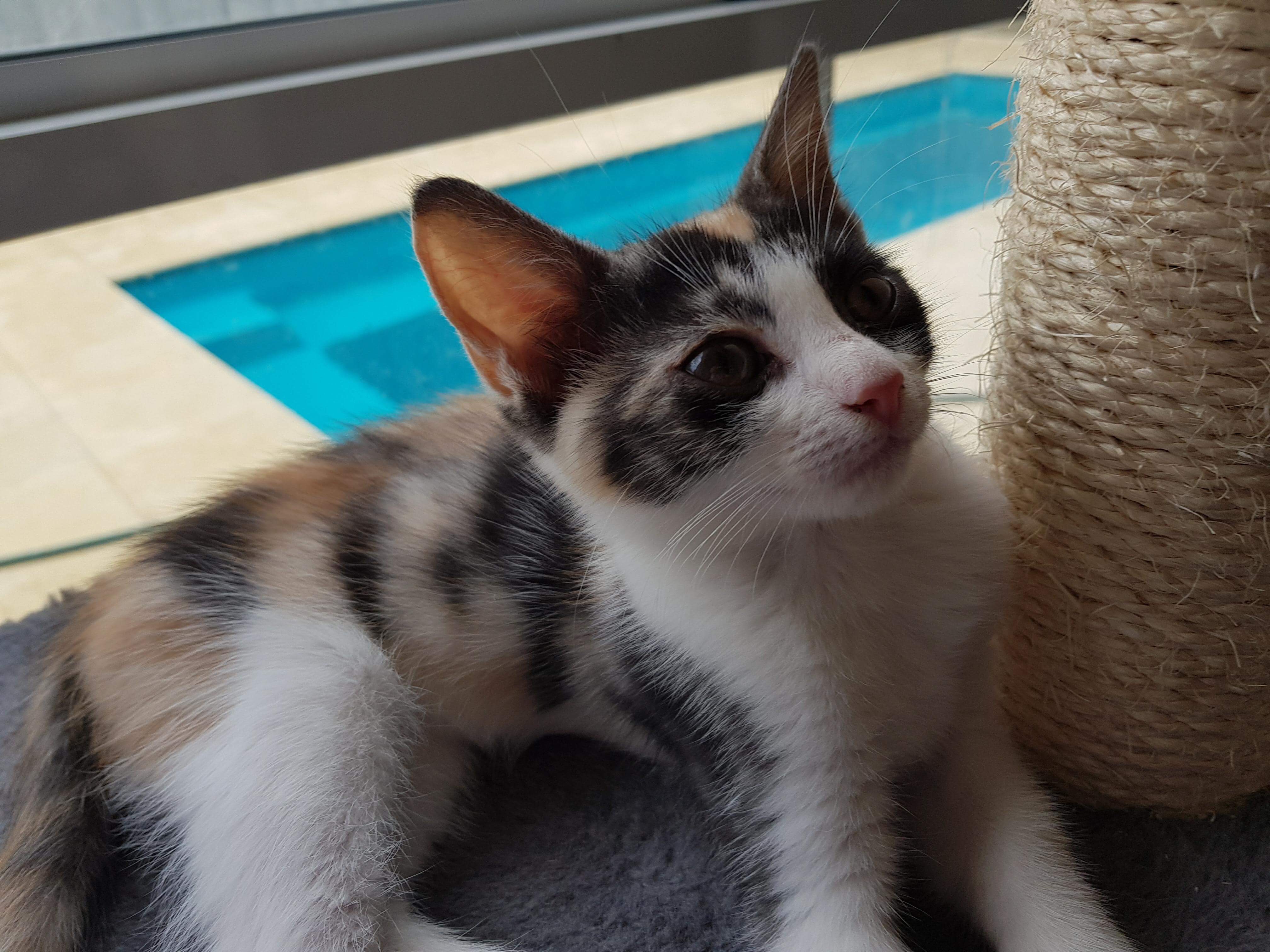 Meet Pumpkin, an adventurous and free spirited kitten who loves to explore. Pumpkin is not known for lazing about all day. How can she when there is just so much in her foster home to discover!! She is a loving and adventurous young lady who loves to play. But when all the exploring and playing has tired her out, she would love nothing more than a lap or couch to curl up on. She is being fostered in a home with dogs, cats and school aged children and happily gets along with all of them. She is also litter trained.