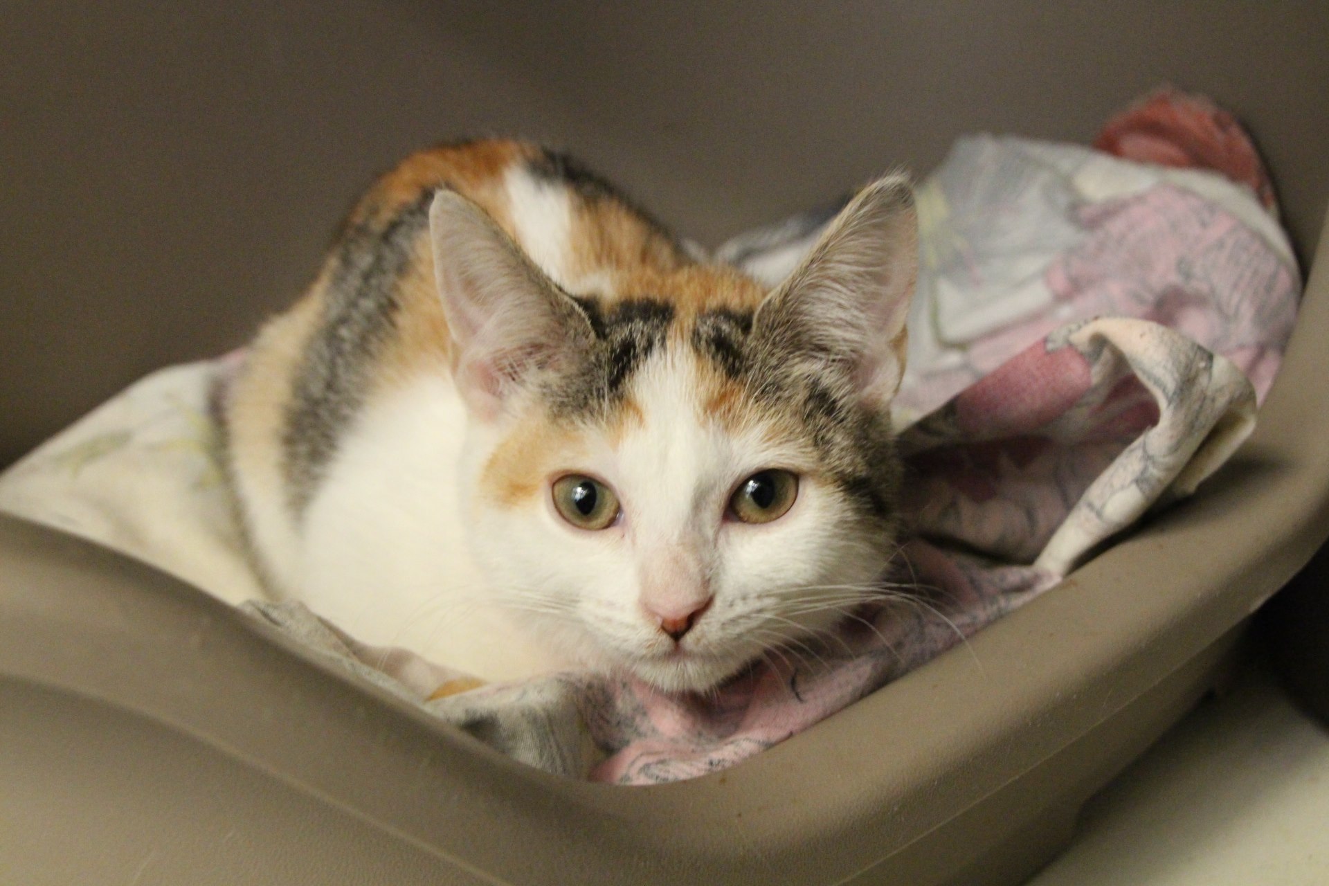 We have an adorable little 9 week old kitten named Kit Kat available for immediate adoption.