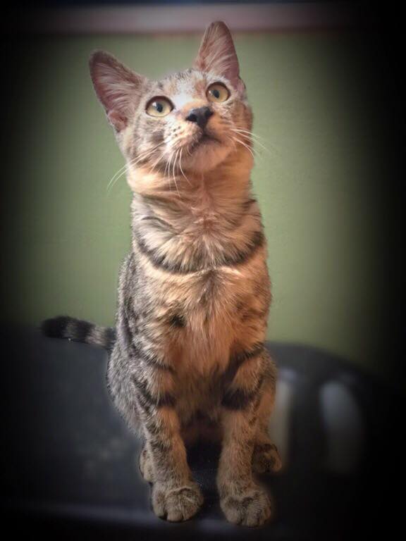 Purby is an allrounder. Loves to hunt dust motes and imaginary anything. He loves to play. He loves other cats (preferably bigger cats because he likes to play rough) . He loves small dogs (not yet tested with larger dogs or children).