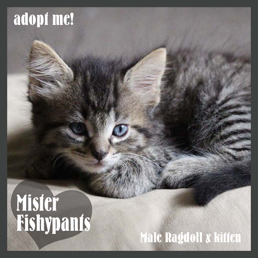Mister Fishypants is a gorgeous stripy male Ragdoll x kitten approximately 8 weeks old.