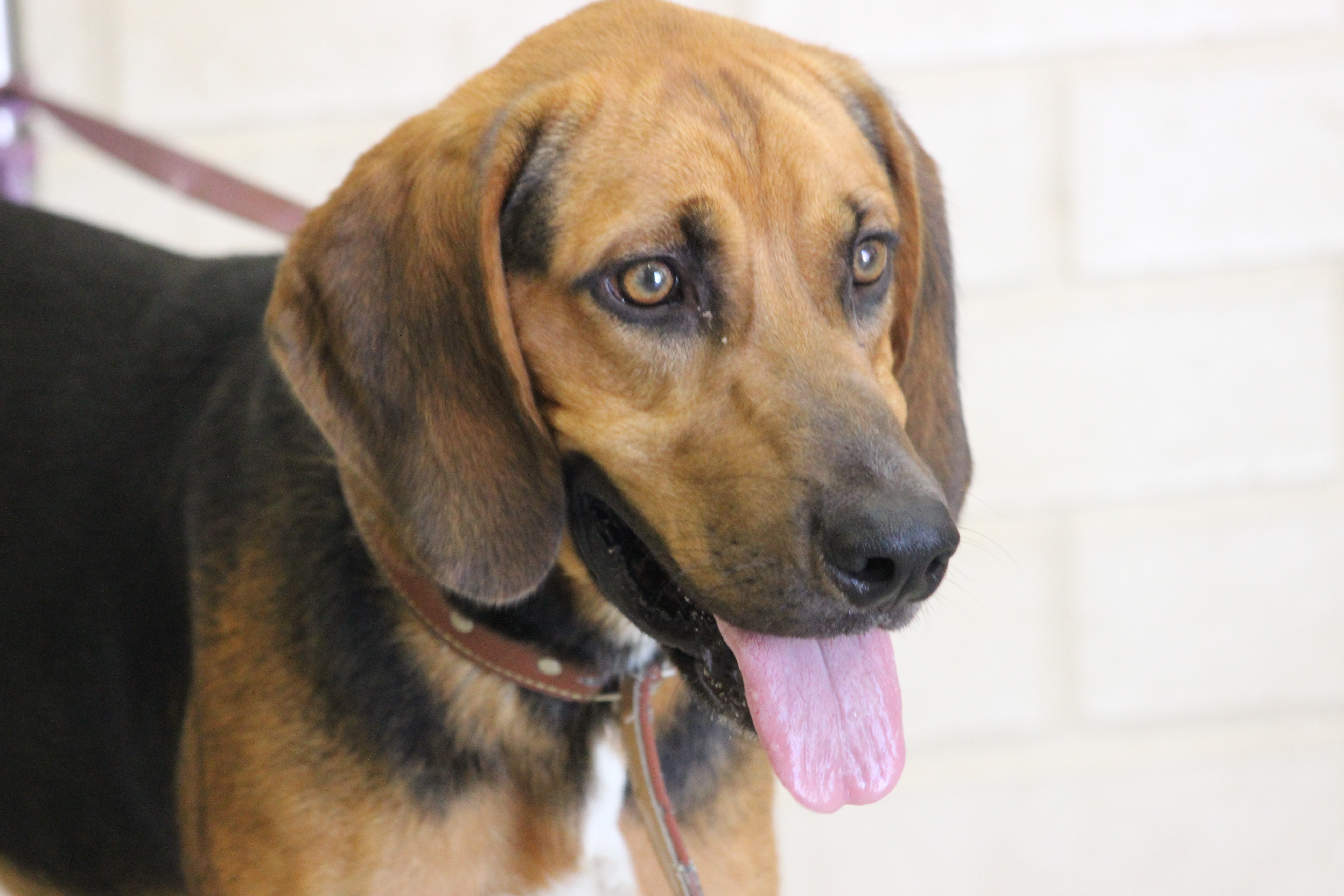 He is a bloodhound x , about 4yrs old and a lovely natured boy. He spends most of the day with his female friend playing and when he isn't he is lazing around.