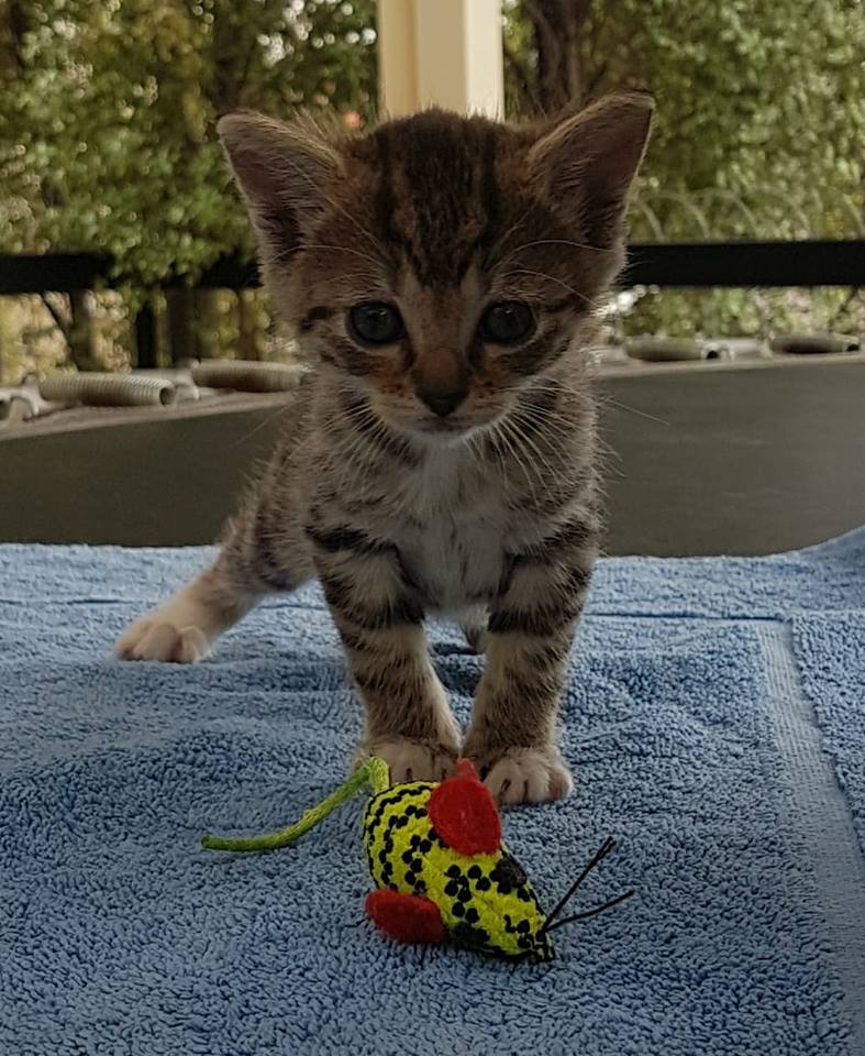 Hi I'm Tiger-Lily. I am a very sweet petite little girl who is always waiting for kisses and cuddles. I happily live in foster care with other cats/kittens, dogs and my big and little foster carers. My siblings and I came into care with our Mumma Krystal when we were 2 days old and therefore adore our humans. I'm an extremely affectionate and snuggly kitten, who loves to play with toys and with anyone that will join in. I love to sit back and take in the goings on in my busy foster home, but when you want snuggles I'm ready and waiting. I am an indoors only kitten, but I love it best there because I feel safe and love being near my family. I will fit into any kind of home with some time and patience to adjust to a new environment and when settled I will give lots of love and kitty cuddles.
