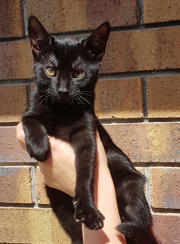 Hi I'm Bear. I am a super sweet baby who is always waiting for kisses and cuddles. I happily live in foster care with other cats/kittens, dogs and my big and little foster carers. I was hand-raised from 1 week old and therefore adore my humans. I'm a super affectionate and playful kitten, who loves to watch the goings on in my busy foster home and will meow and paw at you for attention. I love nothing more than cuddling up on your chest, under your chin giving kisses and love belly rubs and ear scratches. I am an indoors only kitten, but I love it best there because I feel safe and love being near my family. I will fit into any kind of home with some time and patience to adjust to a new environment and when settled I will give lots of love and kitty cuddles.