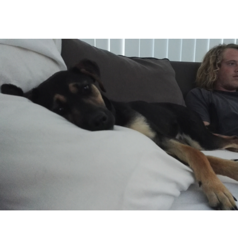 Daisy is a very happy girl who does a quirky bum wiggle when you come home and when you give her affection. She will also lay around wherever you are around the house. Daisy would probably best suited with a young active couple or a family with older children because she tends to jump when you arrive home, but is learning over time not to.