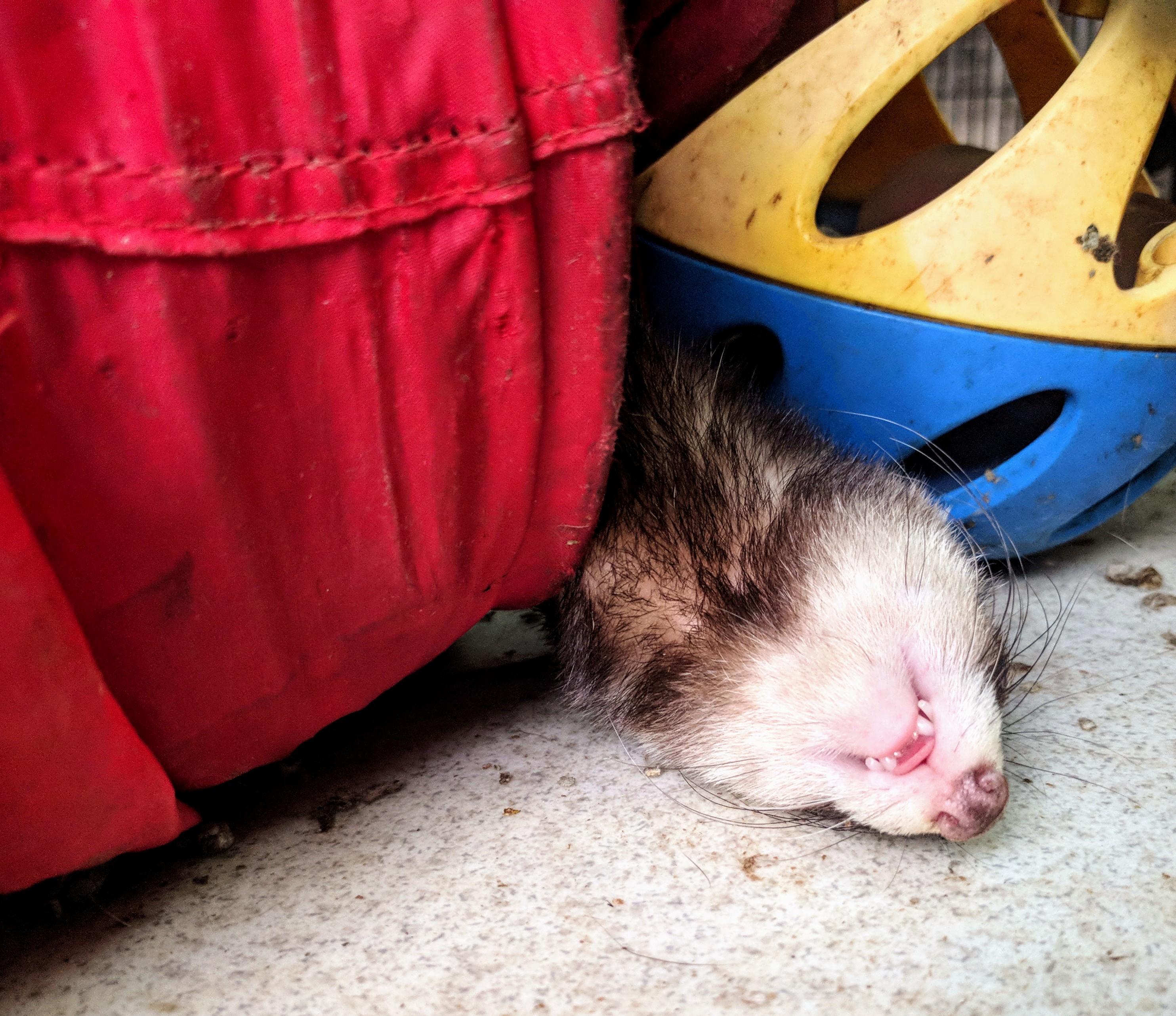 Bailey is a nippy young girl. She hadn't had a great life prior to rescue as her young owners were afraid of her playful nips. Bailey gets along great with other placid ferrets. She does still need nip training.