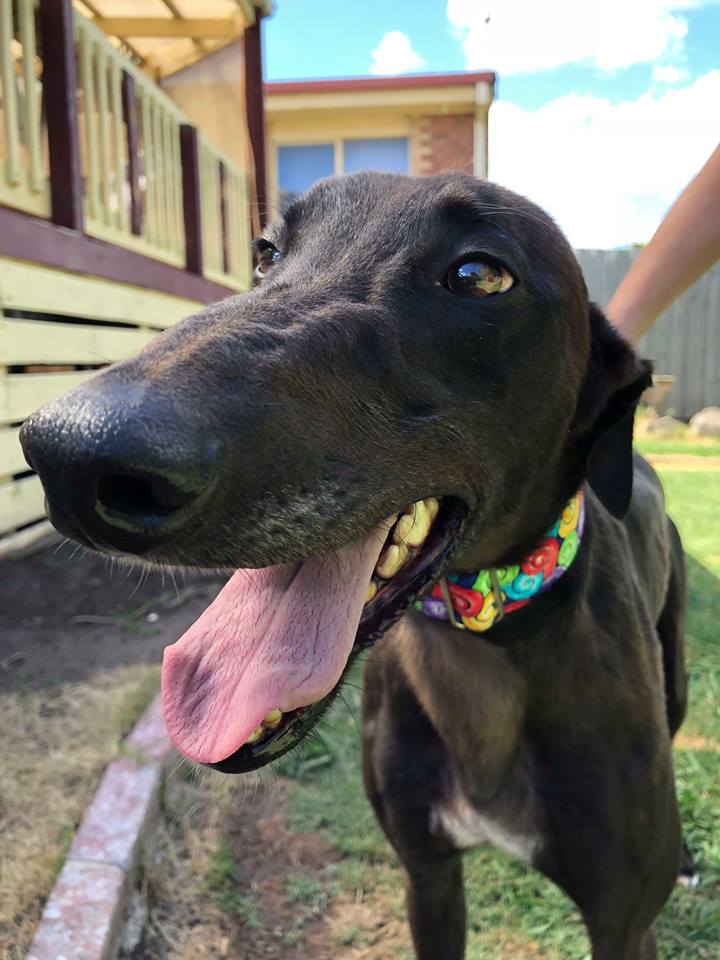 Middy (short for Midnight) is a nearly 3 year old happy and sweet boy. He loves his toys and playing with his 3 legged Kelpie foster brother and greyhound foster sister. This boy is bursting with happiness and loves people. His two favourite things are cuddles with his humans and playtime with his foster siblings. Middy is not a big boy. He is on the small to medium size for a greyhound boy.