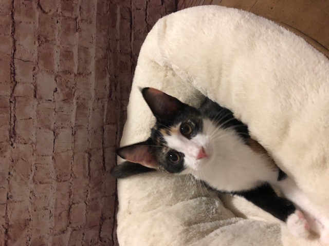 Josie is a cute little tortoiseshell girl with white and black face. The first to meet Josie will want to adopt her!! I have never fostered a litter of kittens as affectionate and people orientated as Josie’s litter. Come and meet her and her siblings and they will instantly be climbing all over you competing for your attention! They love their food and playing with their toys but as soon as someone is nearby they rush over purring looking for cuddles. If you think you would like to meet Josie or her siblings phone to arrange a time to see them ASAP as their personalities will have them adopted in record time!!!