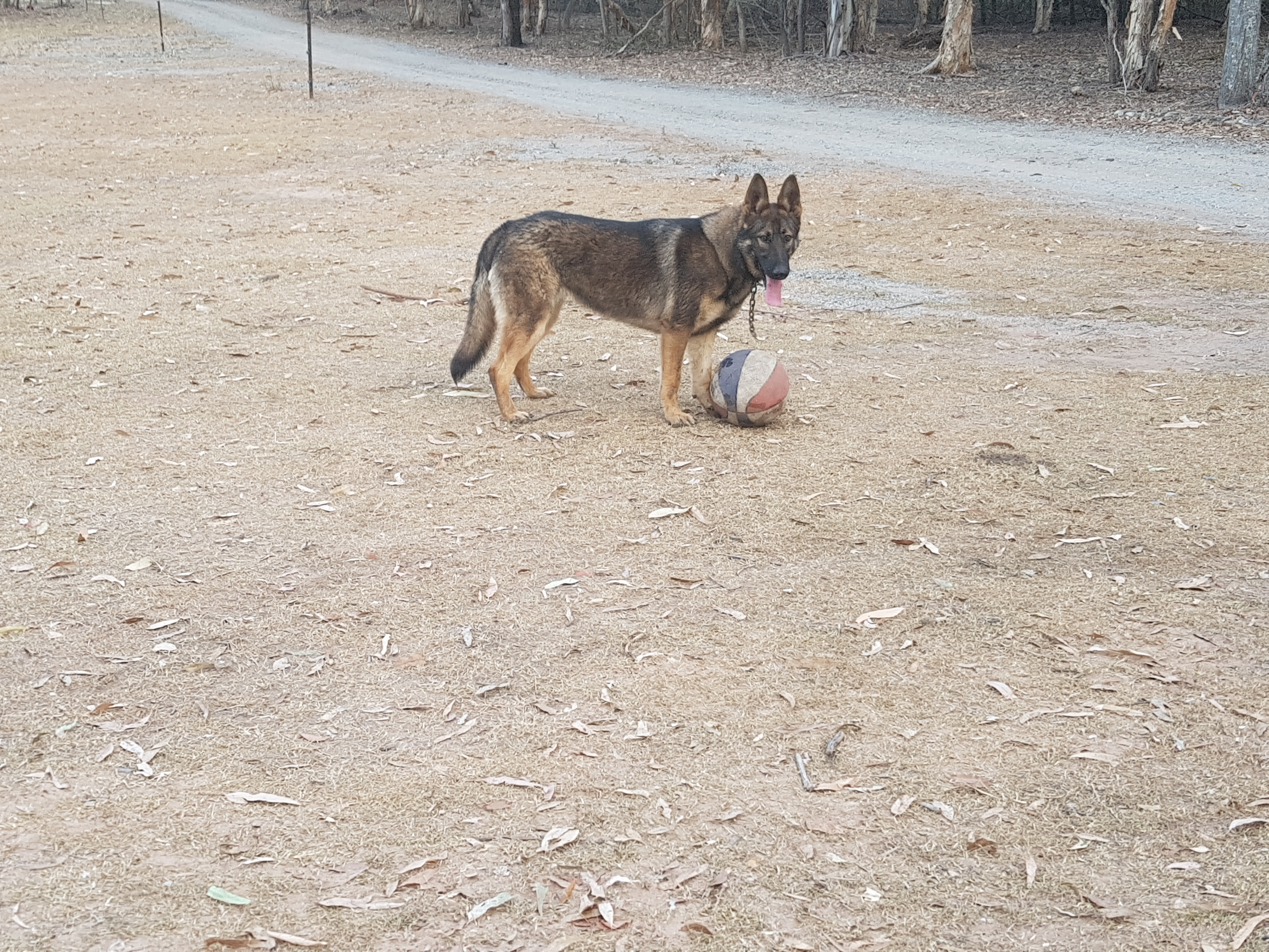 Kaia is a 13 month old, busy German Shepherd female. Beautiful straight back shape with medium length hair.
