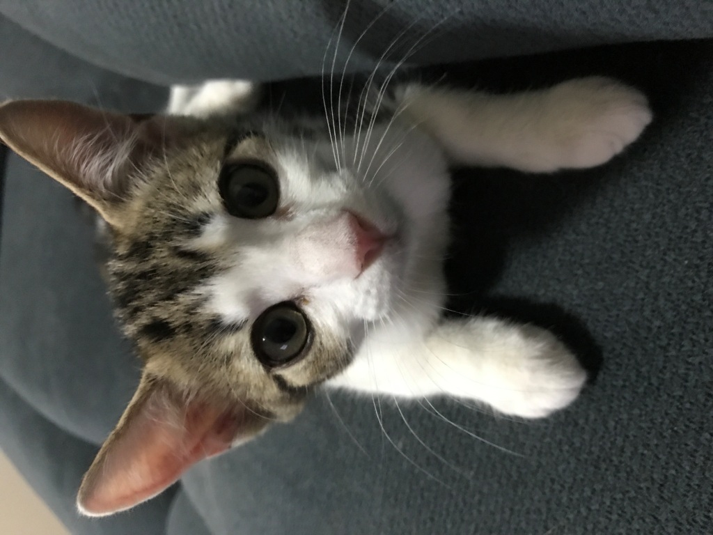 Hello I am Mr Moochie, I am called this and I am a big mooch and love to mooch all over my human. I am such an affectionate kitten and love to have cuddles from my foster mummy and I regularly fall asleep in her arms on my back whilst purring my head off. If her lap is not available I will just curl up on the couch next to her. I also use my big foster brother as a pillow, I love to fall asleep on him if the human is not available.
