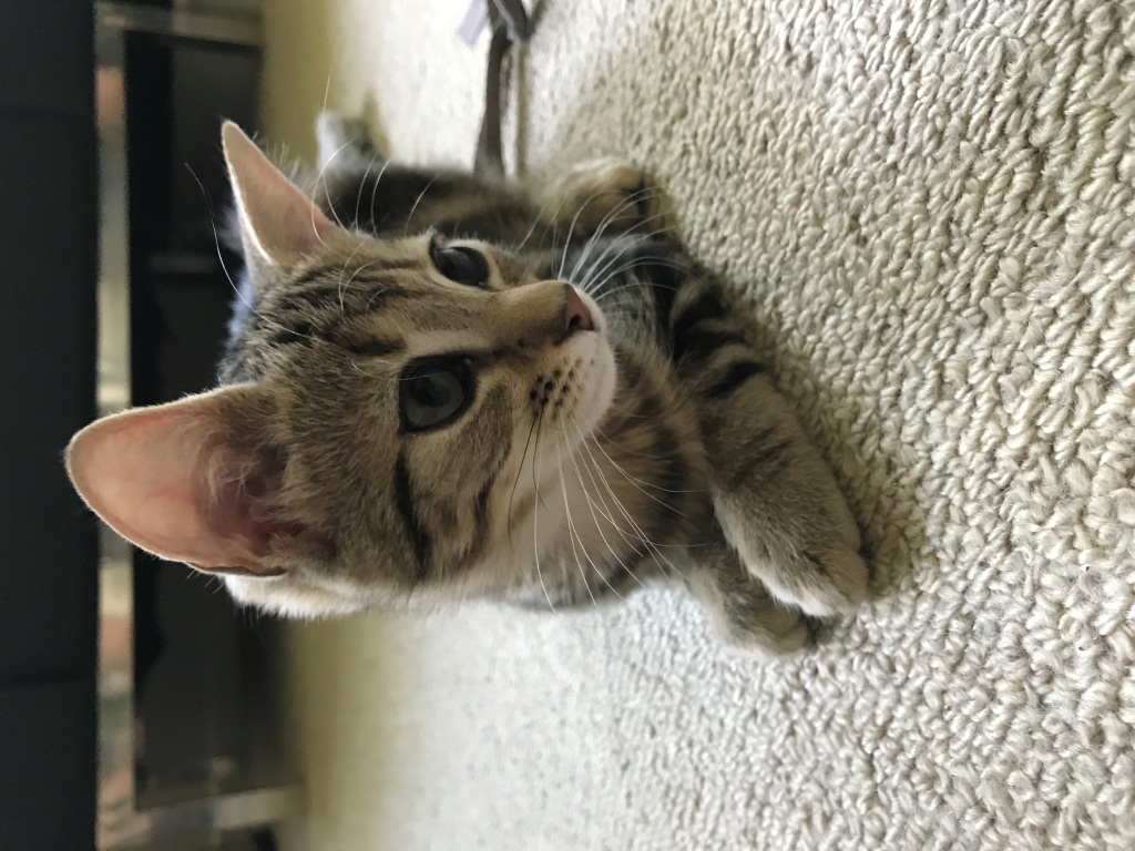 I am a laid back, relaxed, go with the flow kitten. I can easily entertain myself with my cat toys, but am happy to play with my other foster kittens. I can find the best hiding places in the house and then pounce on an unsuspecting victim as they pass by. I am a bit of a smarty pants and love to figure out new toys and can pick them up much faster than my brothers.