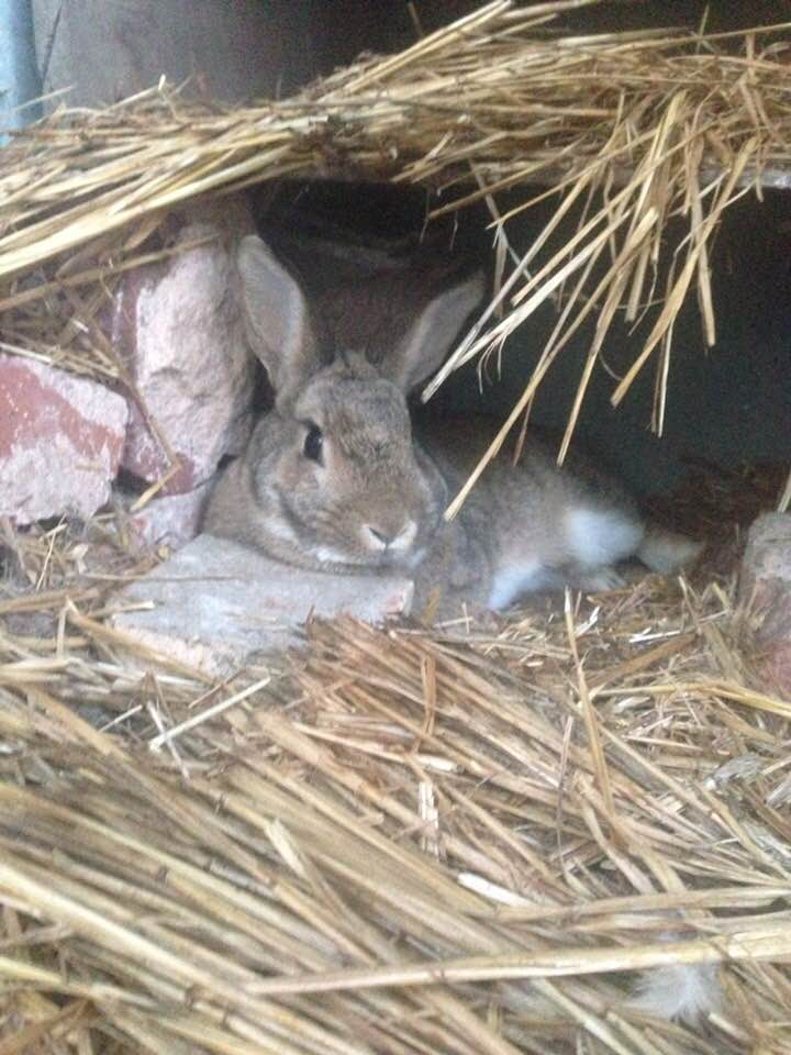 This lady has previously lived in a large, secure outdoor pen with other animals including chickens and geese so she's not at all suited to living in a small hutch (well, no bunny is!) She's also mostly litter trained so would adapt easily to being a house rabbit. She could live with a friendly female or sterilised male bun, or with guinea pigs or back with poultry like before! She's also used to kids being around (but she's not a cuddly bunny so isn't suited to small children who aren't familiar with rabbits).