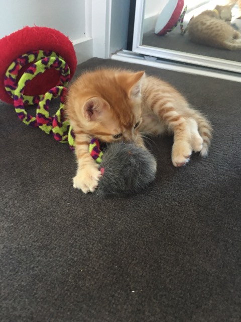 Adorable little Willem loves being chased around by the other cats. He loves to snuggle up with them and enjoy his playtime activities with his feline friends and family. He would love a kitty friend in his new home so he has constant companionship. He seems to get a little stressed when he finds himself on his own and will quickly head back to the safety of his mum and brothers.