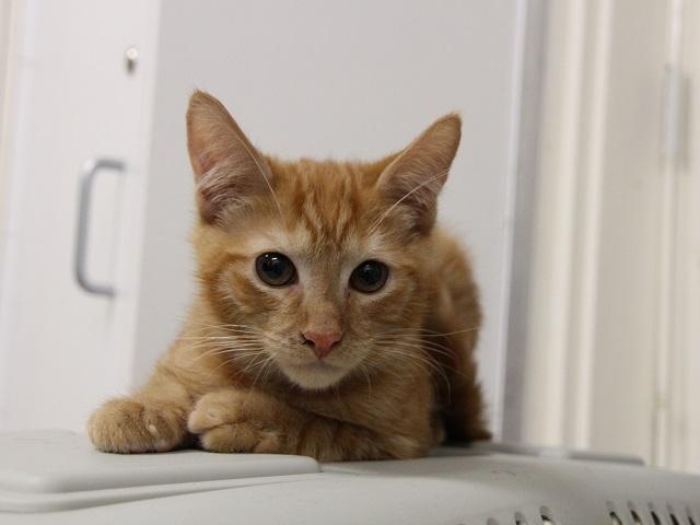 We have a gorgeous, timid 12 week old male kitten named "Ginger Megs" who is available for immediate adoption.