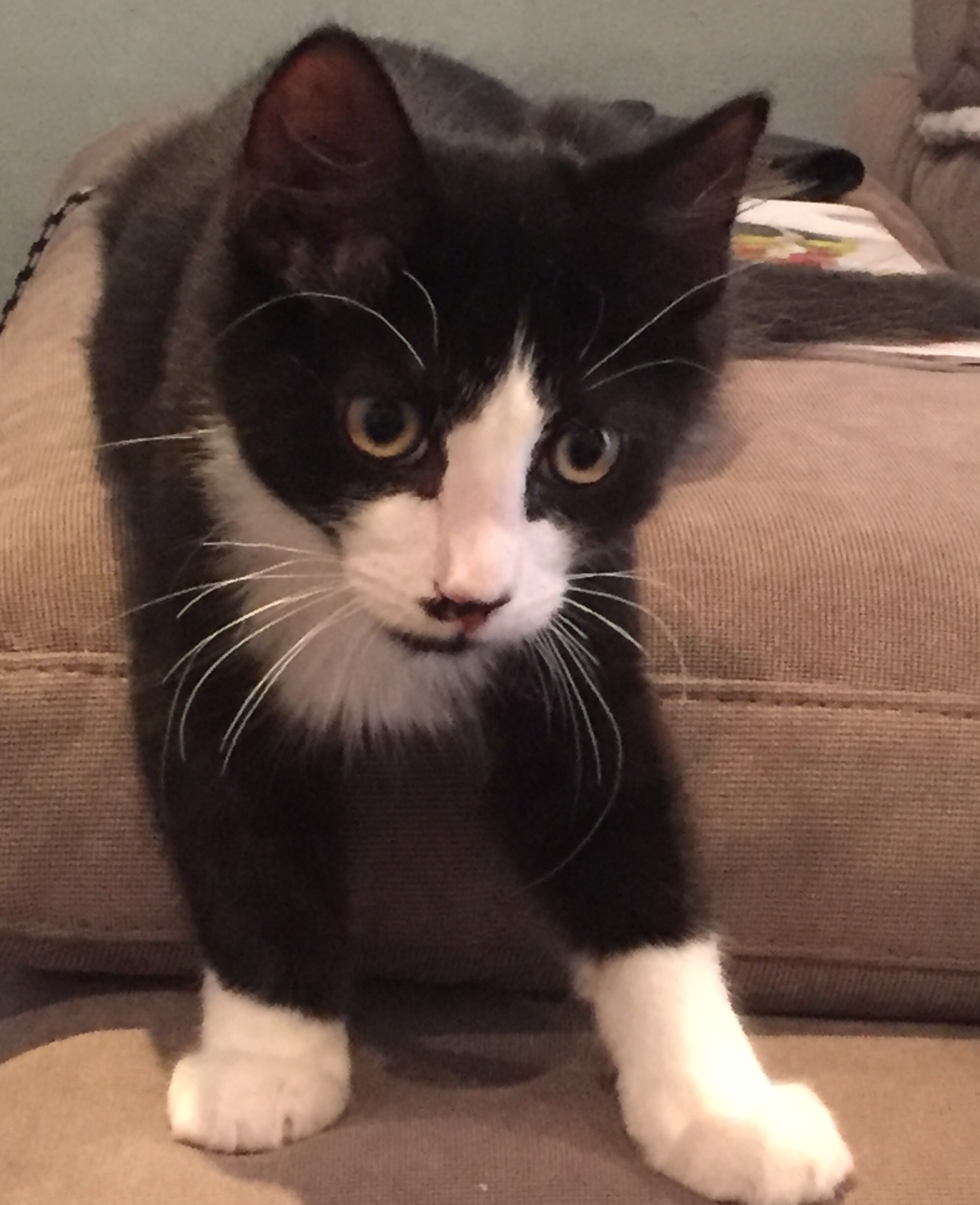 Even though this little boy was born in an alley and separated from his mother at a very early age this sweetie has come round to be a happy playful kitty.