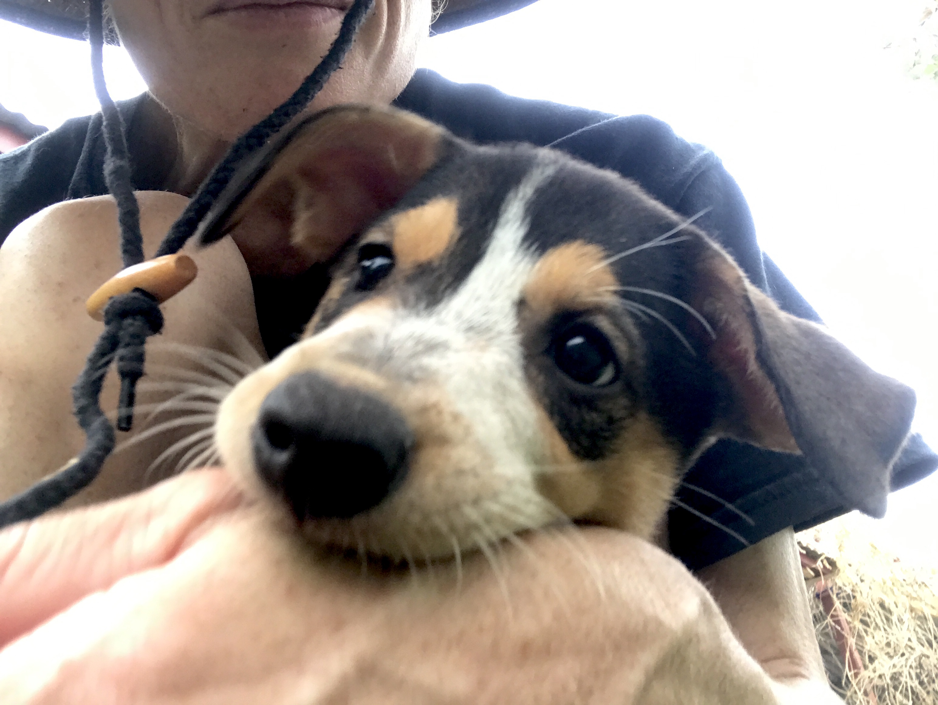 Peaches is really very gorgeous. Like her littermates she is extremely intelligent, but she also has the most lovable nature and is so nice to have around, with her gentle ways and lovely composure. She would just love to have her own special human to form a strong relationship with. She is a playful, healthy and confident puppy, and can hold her own with the other pups, who are a boisterous mob. Peaches has naturally good manners and will be very easy to train because she just wants to please. She has been raised up to 8 weeks with his wonderful mum and is now in foster care with her litter-mates awaiting re-homing. Peaches is doing brilliantly with crate and house training.