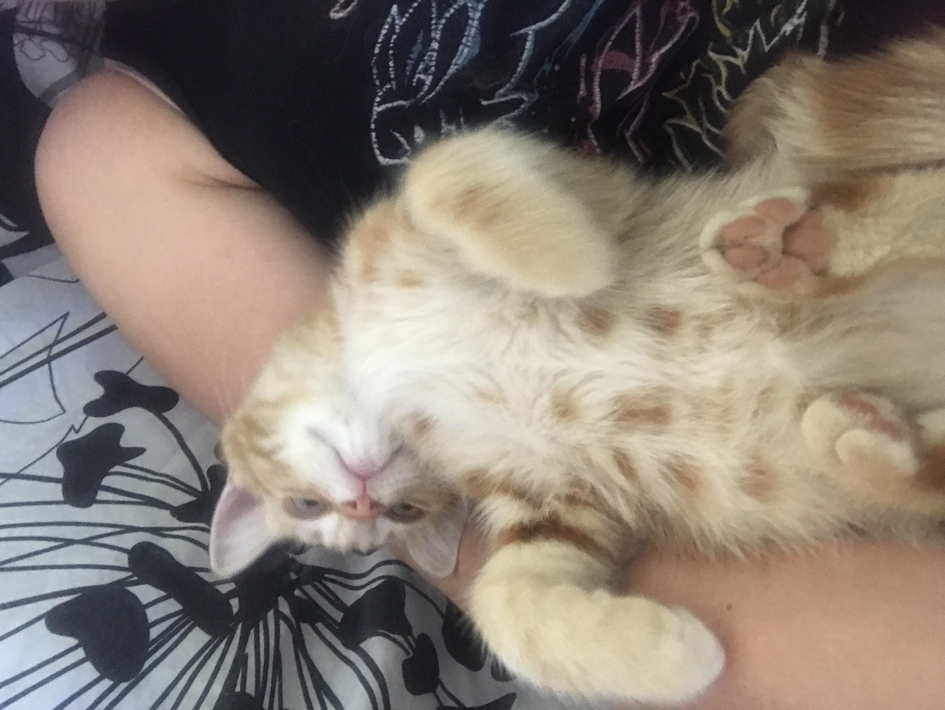 This courageous boy was rescued from a life on the streets. His siblings are all quite shy but he is a very confident and friendly boy who loves all the attention on him! he will roll over for belly rubs and chin scratches and will sit with you all day if you let him.